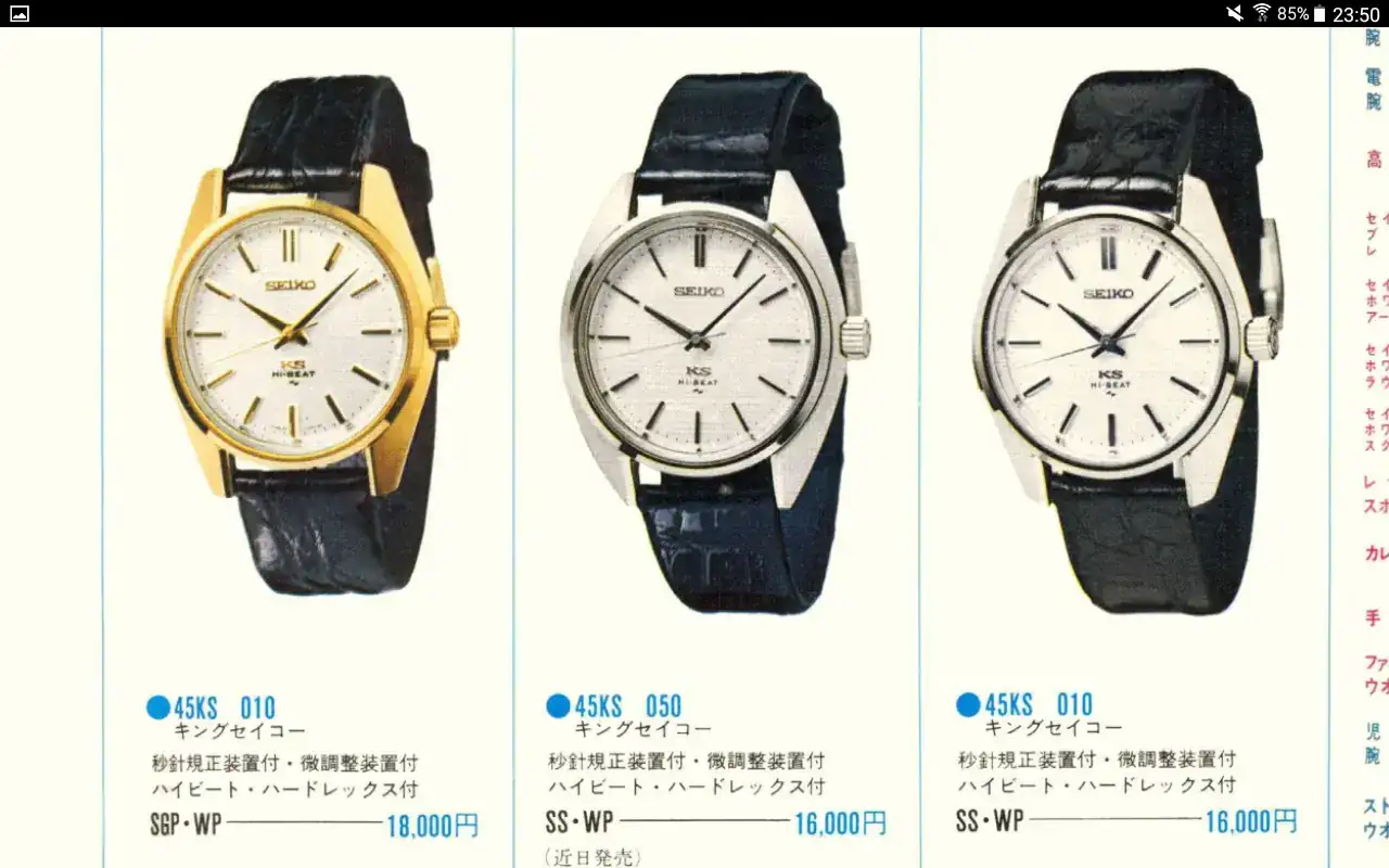 También se dice que Seiko decidió no competir contra sí misma, dado que los King y Grand Seiko son cohetaneos de ambos Pres-, y decidieron cesar la producción de estos últimos.