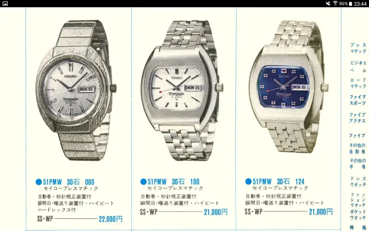 Me fascinó Rafa, una investigación estupenda de una de las series de Seiko que yo desconocía. Muchas gracias por tu trabajo y por compartirlo con todos nosotros.Dicen por ahí que la serie Pres-, compuesta por los modelos Seikomatic-P y Presmatic, son de lo mejor que llegaron a producir los chicos de Seiko, al mismo nivel cualitativo de los modelos King y Grand Seiko, aunque se da el contraste de que los Grand y King han tenido una producción que se prolonga durante décadas, mientras que los Seikomatic-P y Presmatic se quedaron "tirados" al poco de nacer, no alcanzando los cinco años de producción.
