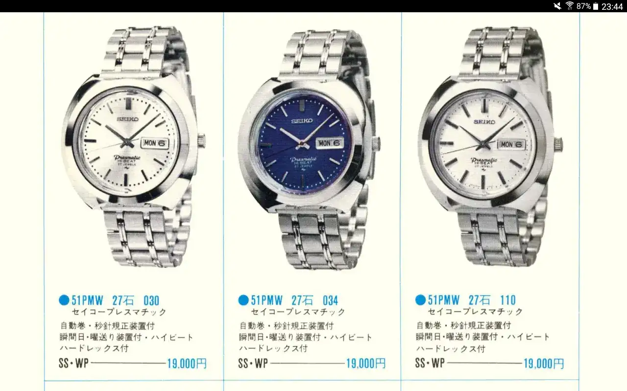 El Seikomatic-P, pensado para el mercado japonés, tiene origen en 1966 (yo mismo he encontrado un ejemplar de diciembre de dicho año) y el Presmatic, destinado a la exportación, apareció en 1967 (he visto otro de noviembre).