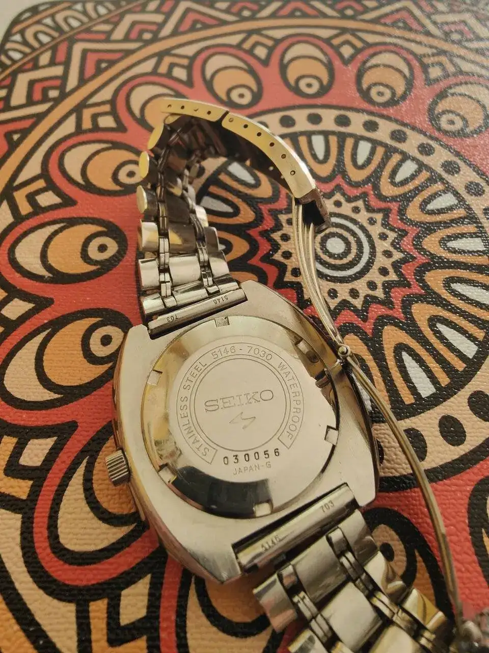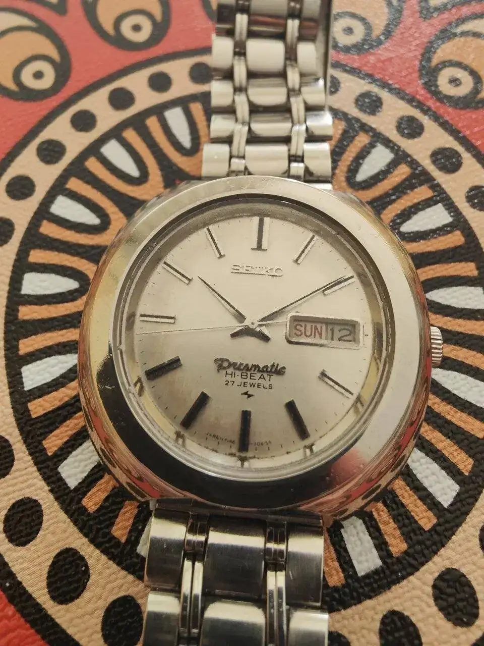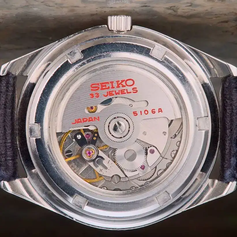 El calibre 5106, de 33j, se estrenó en el Seikomatic-P y duró hasta los últimos ejemplares (el más tardío que he encontrado es de enero del 70) y el Presmatic empezó su carrera con el mismo 5106, pero en los años 69, 70 y 71 sería reemplazado por el 5146, de 27j. Ambas máquinas, reitero, se crearon y desaparecieron con la serie Pres-.