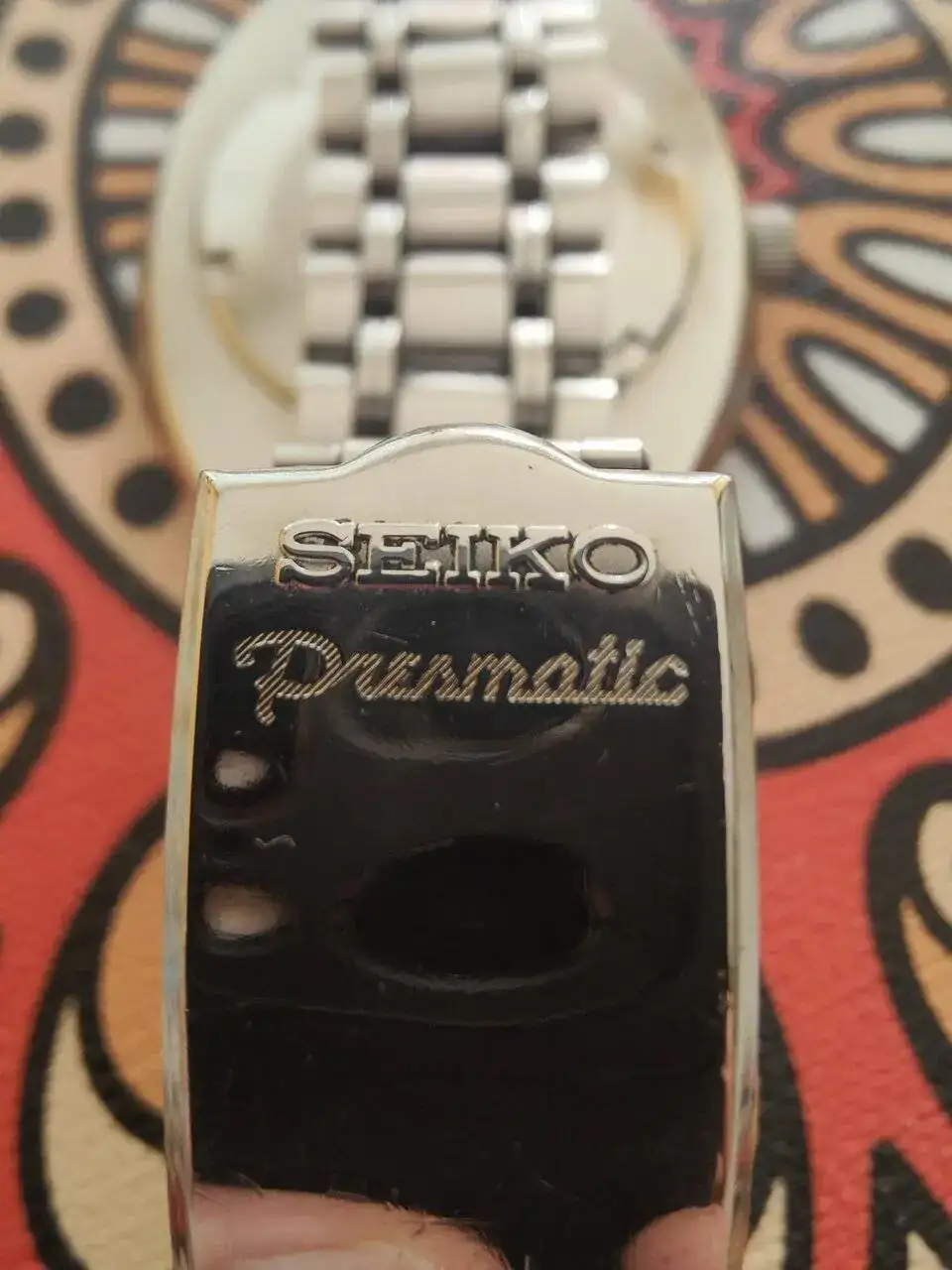 El Seikomatic-P llevaba la marca solamente en el dial, estampada en letras negras, mientras que la palabra Presmatic aparecía en metal aplicado. También acompañaba a la marca en el brazalete. Durante el período en que se montó el Presmatic con la 5106 la tapa aparcece también grabada con la palabra Presmatic bajo la marca Seiko, desapareciendo al empezar a montar los calibres 5146 en el año 1969.