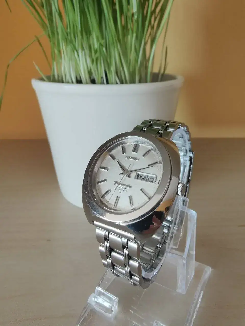 Hay otra posible razón, y éste aporte son imaginaciones mías: los modelos Pres- de Seiko aportaron la primicia del pase rápido de fecha del mes, pero a los dos años de su lanzamiento todos los Seiko con calendario ya llevaban pase rápido, haciendo innecesario señalar dicha función en un modelo determinado. Porque ésto, que es fundamental, no lo había dicho: la P del Seikomatic-P y el prefijo Pres- hacen referencia al innovador pase rápido de la fecha, que se hace PRESionando el exagono de la corona, opción que hasta entonces era inexistente.