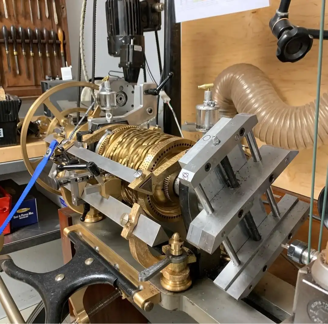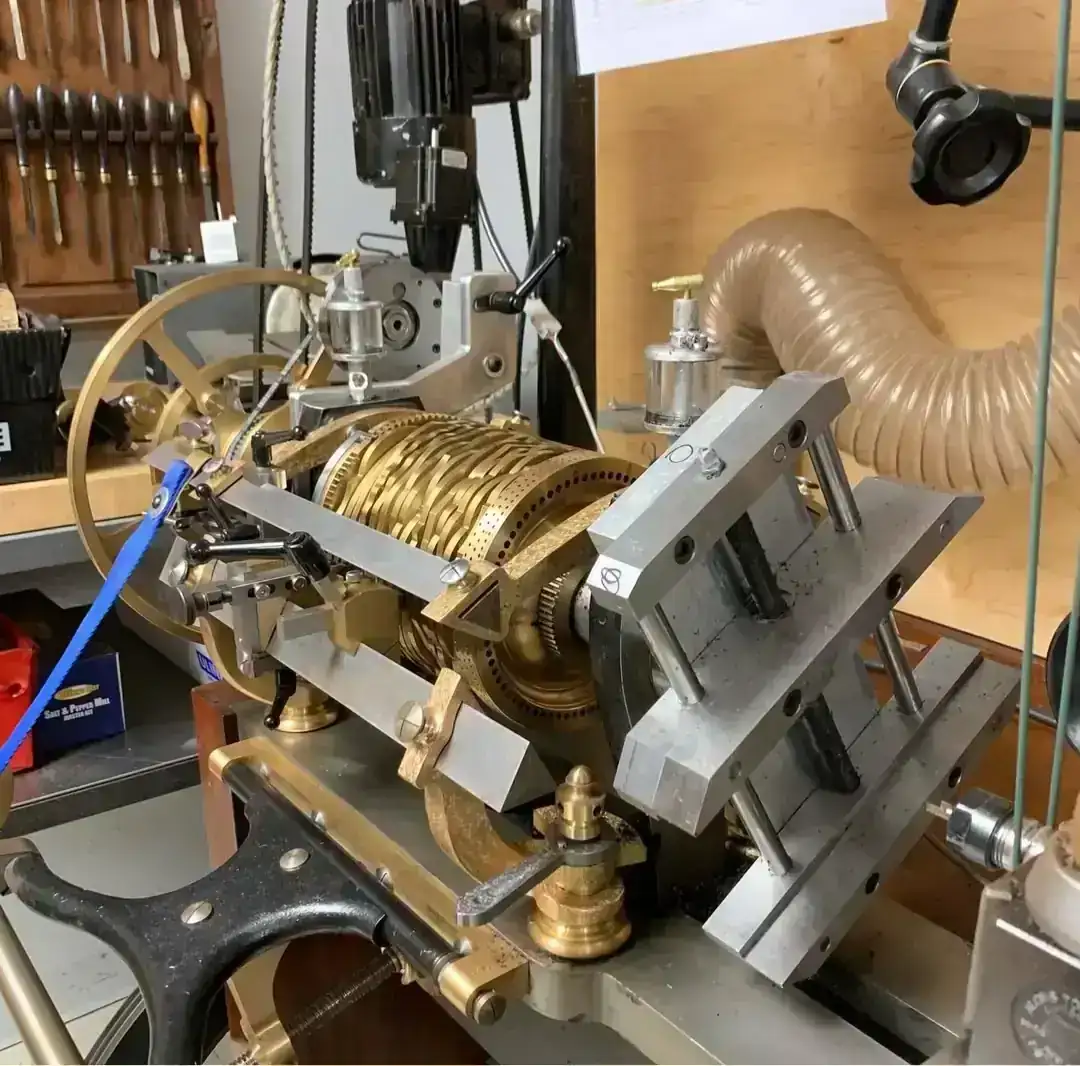 Pues bien este patrón tan chino se ha grabado con guilloché CNC. Ya he hablado en otras ocasiones sobre el Guilloché. Esta técnica nace como decoración de cajas de relojes de bolsillo, para mejorar el agarre, pero pronto pasó a emplearse en diales, siendo yo diria que Breguet el especialista con sus perfectos guilloché à main. Un Guilloché à main se hace con una máquina tradicional que es en esencia un torno en el que el guillocheur controla la presión del corte a puro "feeling", por lo que requiere mucha experiencia, y además, las máquinas tradicionales son difíciles de conseguir hoy día. La palabra guilloché viene precisamente de "cortar", se trata pues de cortes sobre el material del dial. Esto es relevante porque el guilloché más común, que emplean incluso Audemars Piguet y Patek Philippe en sus relojes de entrada, no es un auténtico guilloché, porque no hay corte, sino que es un estampado, lo que es menos profundo y detallado que uno cortado.