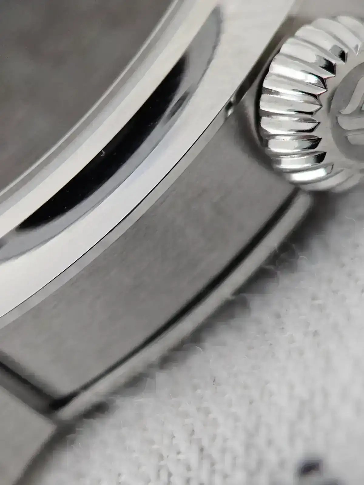 La corona, por último, va firmada, y es el unico sitio donde viene la marca aparte de en el rotor y en el cierre del brazalete