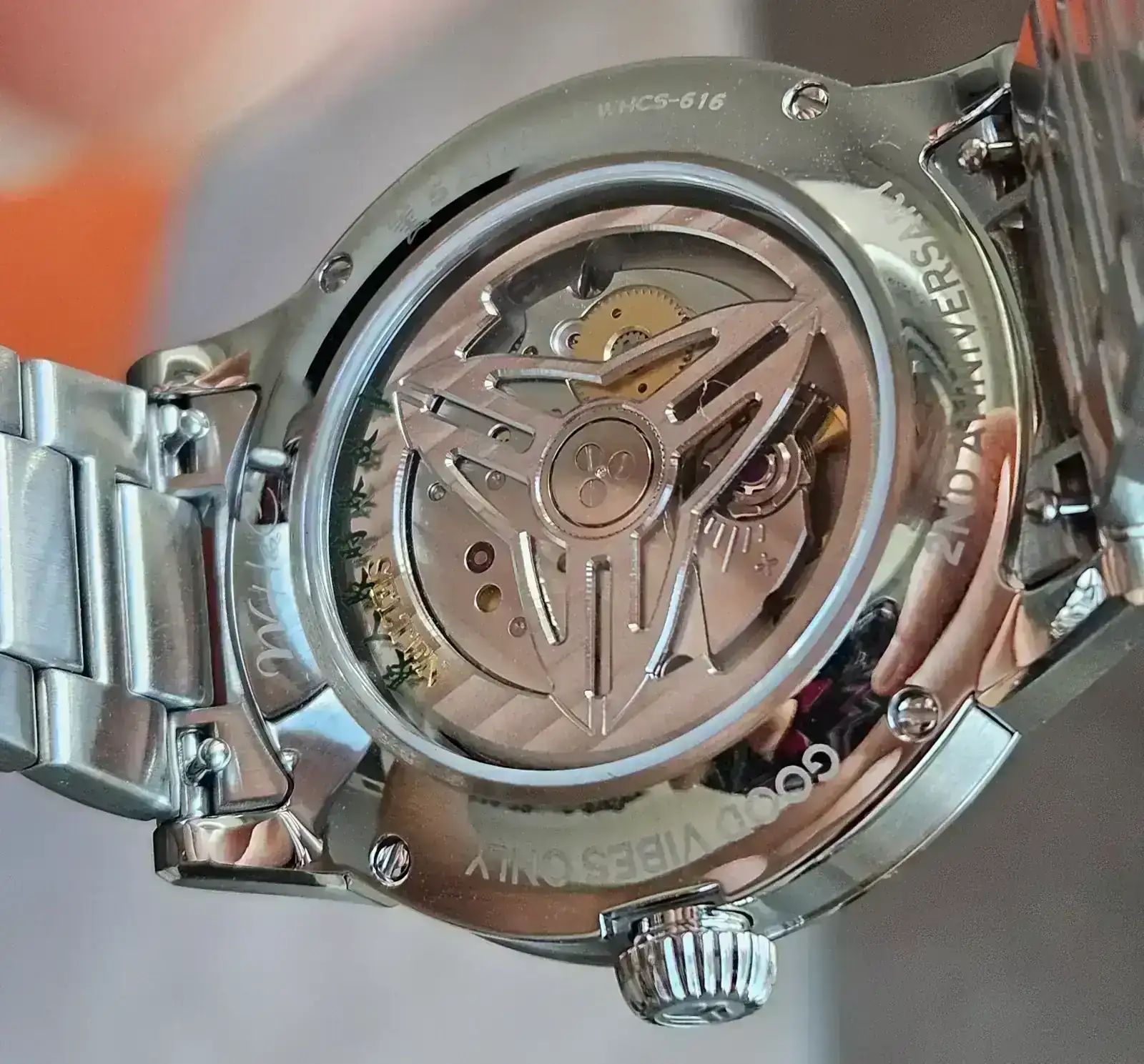 Bien, Jui en chino significa algo así como "reunirse" o "encontrarse". Resulta que el reloj se lanzó el 13 de agosto de 2025 dando una ventana de 72 horas para hacer el pedido, y tras eso, no se pensaban hacer más, es decir no es una edicion limitada en número sino en tiempo, como el Kurono Tokyo Reiwa. Se lanzó con colaboración con Watch Ho & Co, para el segundo aniversario de este club relojero de Hong Kong. De ahí que en la tapa ponga segundo aniversario y el logo de ese club.