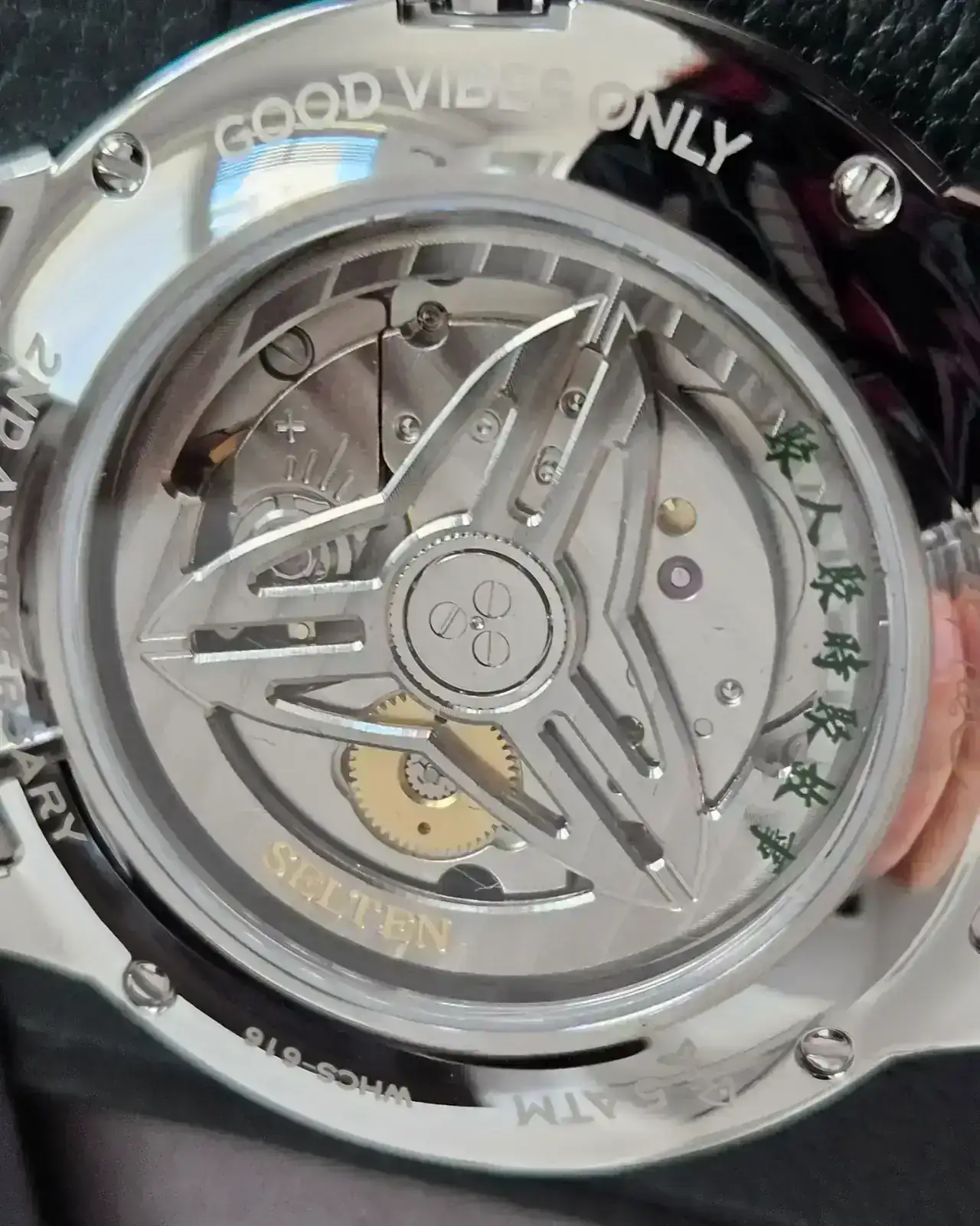Se trata de un fiable, delgado y reparable Miyota 9039. El por qué emplear un calibre japonés en un reloj chino (o Hongkonés, pero Hong Kong es una región administrativa especial de China, y étnica y culturalmente es China) en vez de recurrir a sus afamados Sea Gull, pues es una respuesta que os dejo a vosotros. Desde luego no es para apelar al público occidental porque como os comentaré este reloj se diseña en colaboración con un club de aficionados de Hong Kong. Es decir el reloj está hecho por y pars hongkoneses (más allá de que se haya vendido mucho fuera de allí)