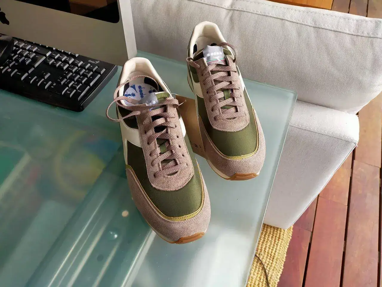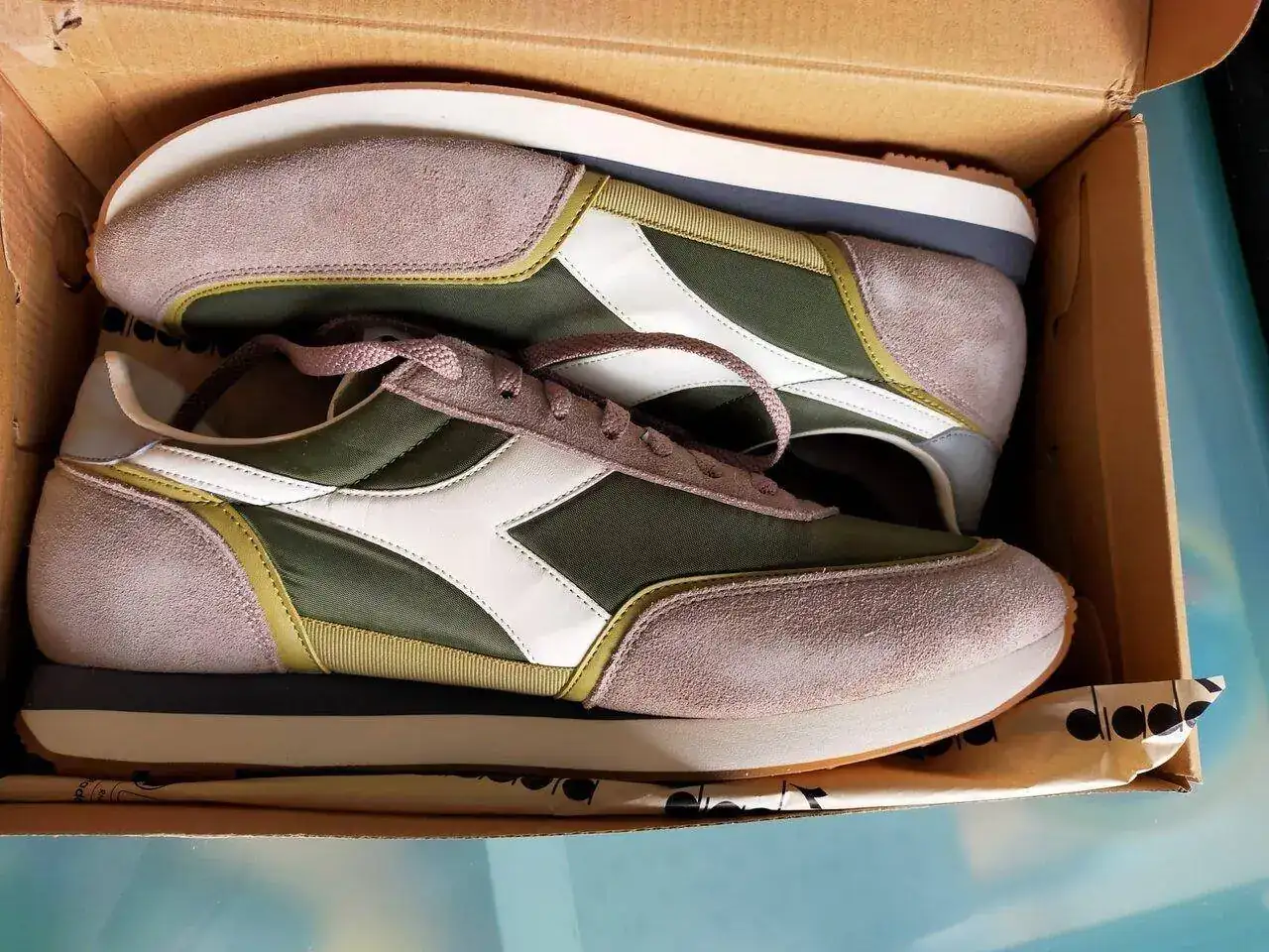 Buenos días. Por problemas de talla, saco a la venta estas zapatillas Diadora modelo Koala Replicant. Color verde oliva. Muy bonitas. Nuevas a estrenar (ver fotos). Con sus etiquetas y la caja original.
