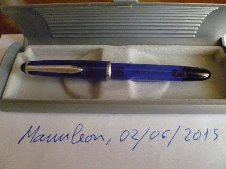 Con caja original, es una pieza realmente rara de la marca alemana, con plumín "M" de acero. Carga por pistón. Caja original. Está absolutamente perfecta.