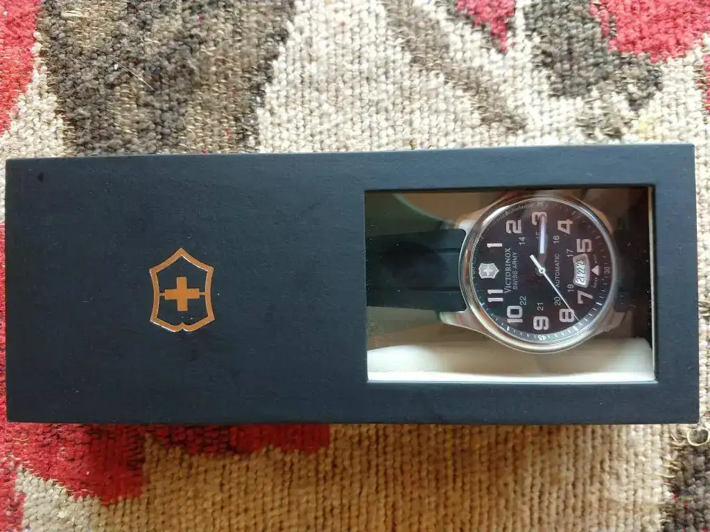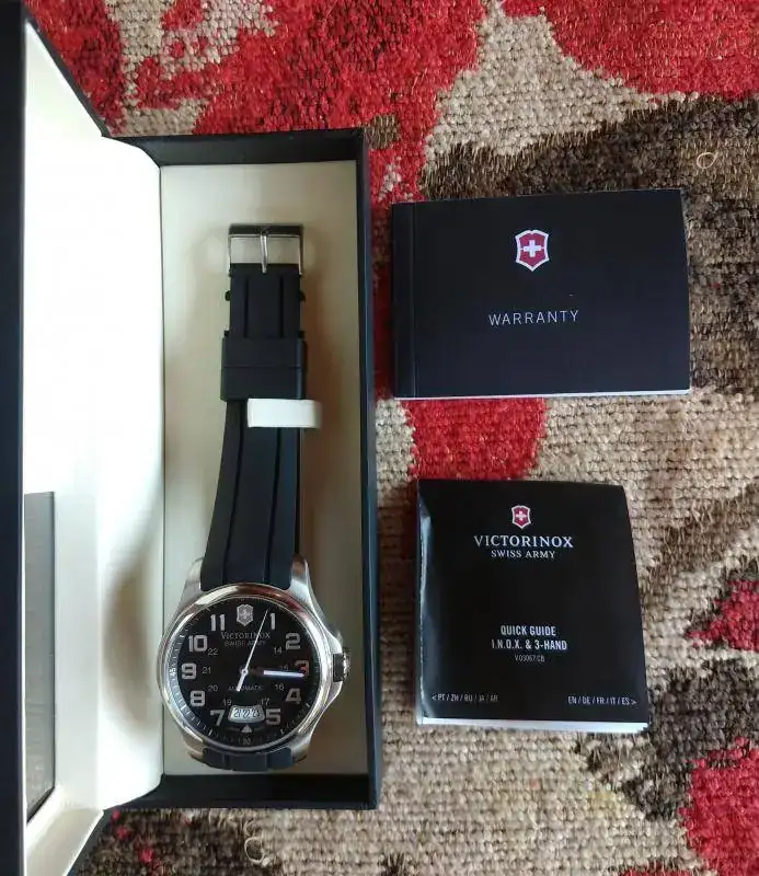 Aquí con toda la papeleta (una garantia internacional no firmada y un manual de instrucciones para relojes de tres agujas de la marca).