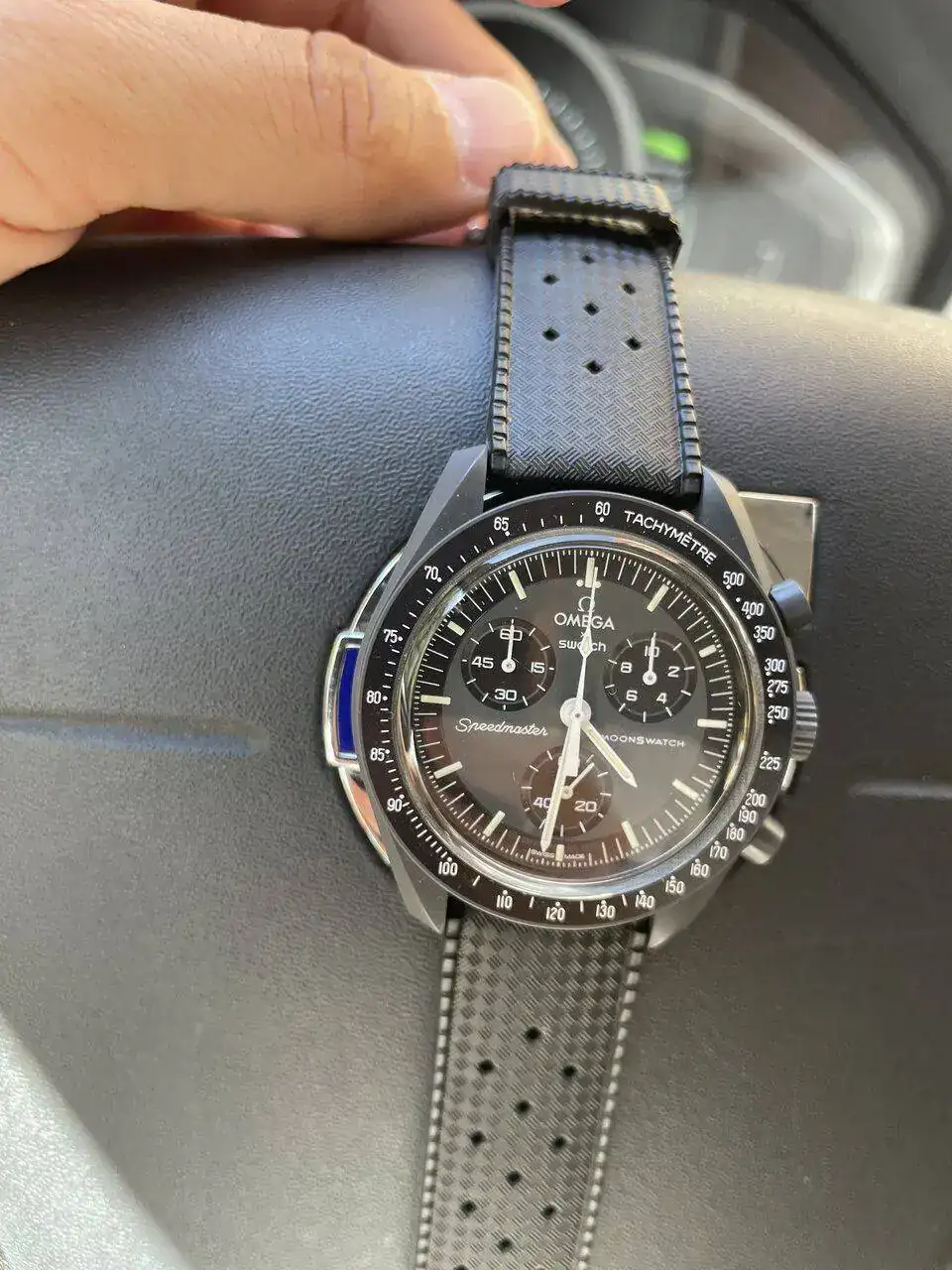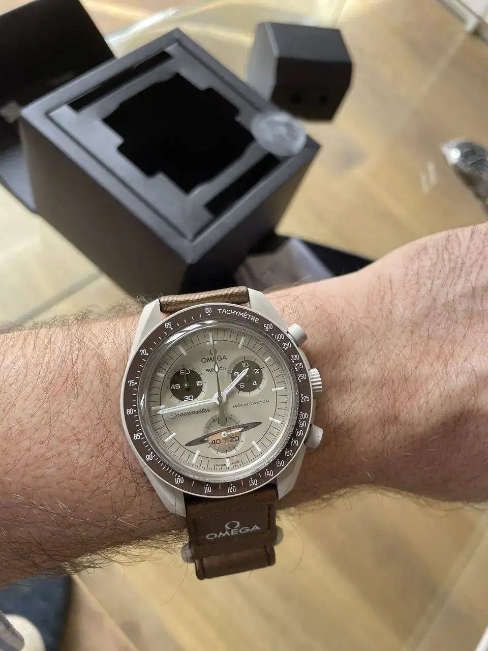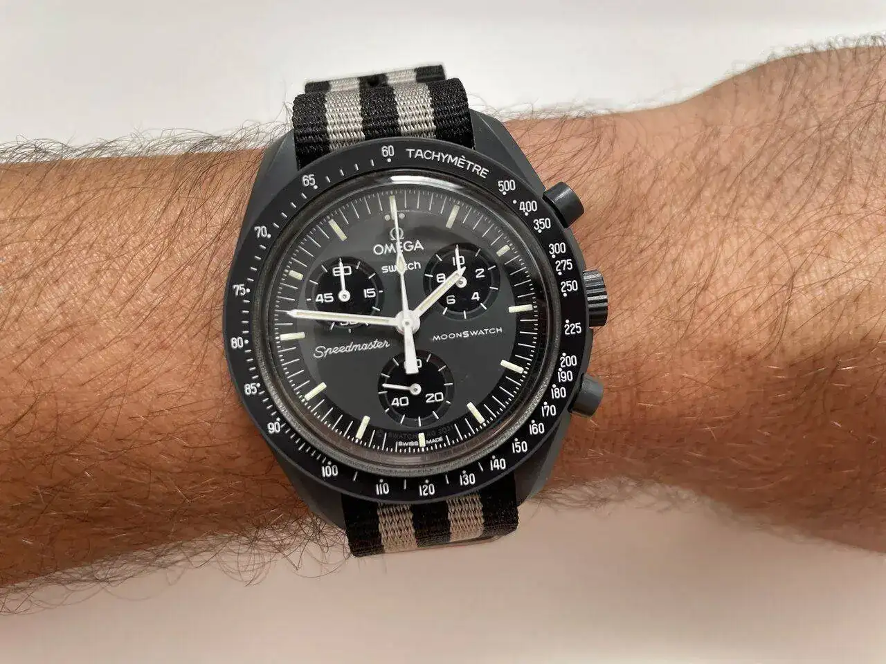 En definitiva es un reloj que estéticamente gusta bastante, da un aire desenfadado y chic (por llamarlo de alguna manera). La calidad creo que no es acorde al precio, debería costar 100 euros menos, pero llevar la firma de Omega tiene que pagarse de algún modo, entiendo que para el aficionado llevar algo en la muñeca que pone Omega a 260 euros y de manera legal es un aliciente para su compra, o sencillamente para el que le guste estéticamente o lo quiera alternar con el Speedmaster original, pero que nadie se lleve a engaño, es un reloj muy Swatch y poco Omega, no al revés, pero eso sí, es muy molón. Algún día pasaré de nuevo por Gran Vía por si disponen de la versión Mercurio o Luna, pero parece ser que hay palos para conseguir estos dos.