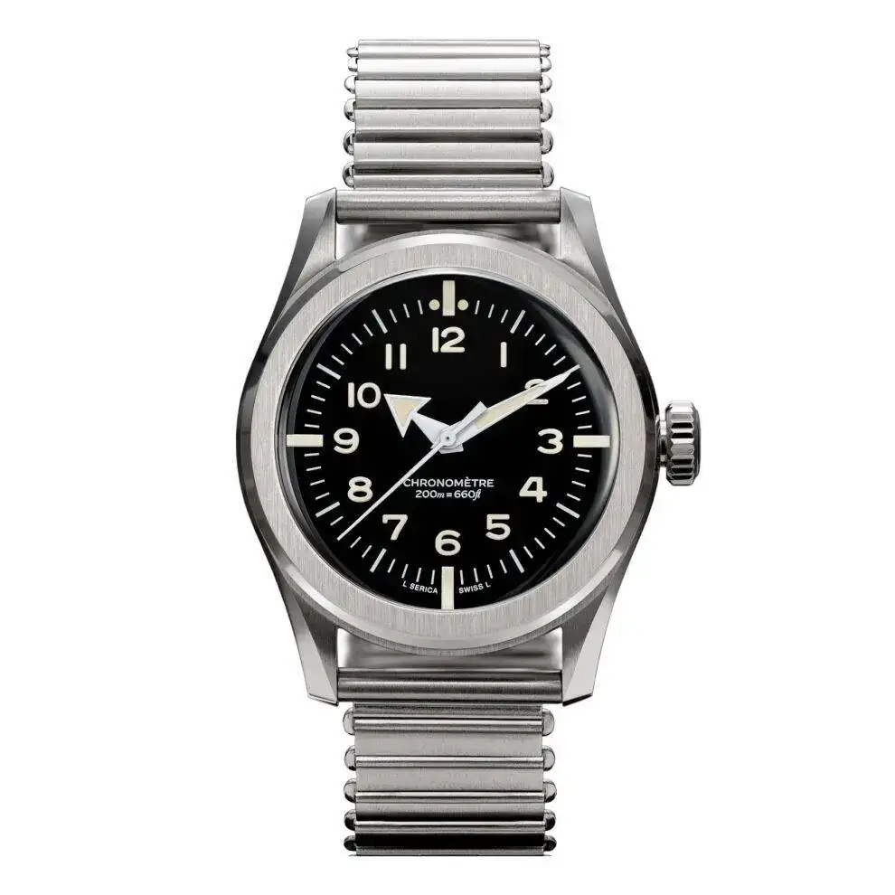 Serica 6190 Commando Field Chronometer, Thinner and Swiss Chronometer Certified. Robustness and sophistication in a single watch. Water-resistant to 200m.