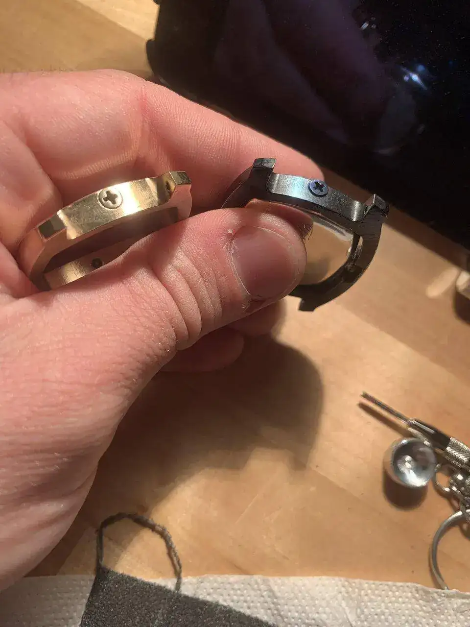 sin intención de hacerme demasiado pesado, hoy os presento la última caja de la serie (hasta que encuentre un nuevo material😂), en este caso, es de inoxidable. Os dejo menos fotos del proceso, y más de las tres cajas y las posibles combinaciones con distintas correas. Saludos y espero que os guste!!