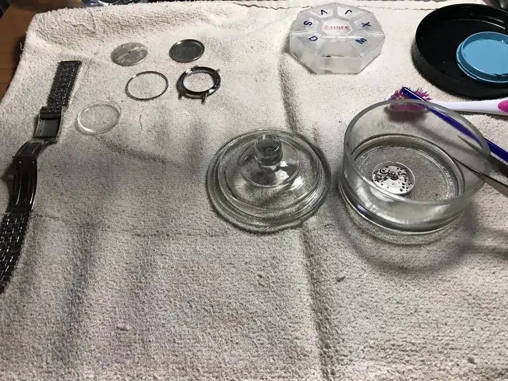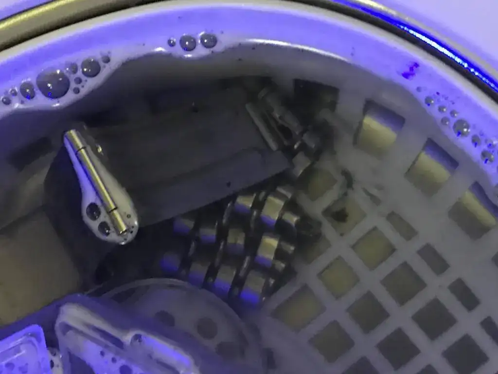 A limpiar entonces y después de quitar lo mas relevante a mano, para lo demás estamos de estreno, una pequeña lavadora por ultrasonidos que parece que no va nada mal.