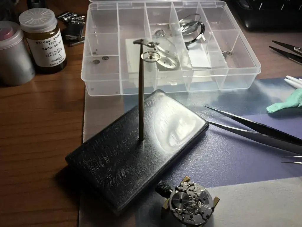 Una vez en este estado las cosas y revisada la mecánica pasamos al montaje con su correspondiente engrasado, incluido rubí del sistema incablok