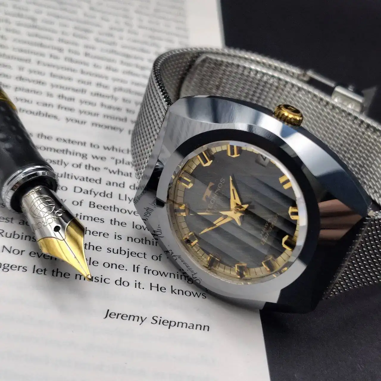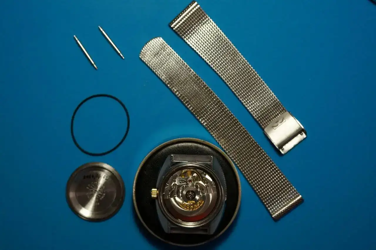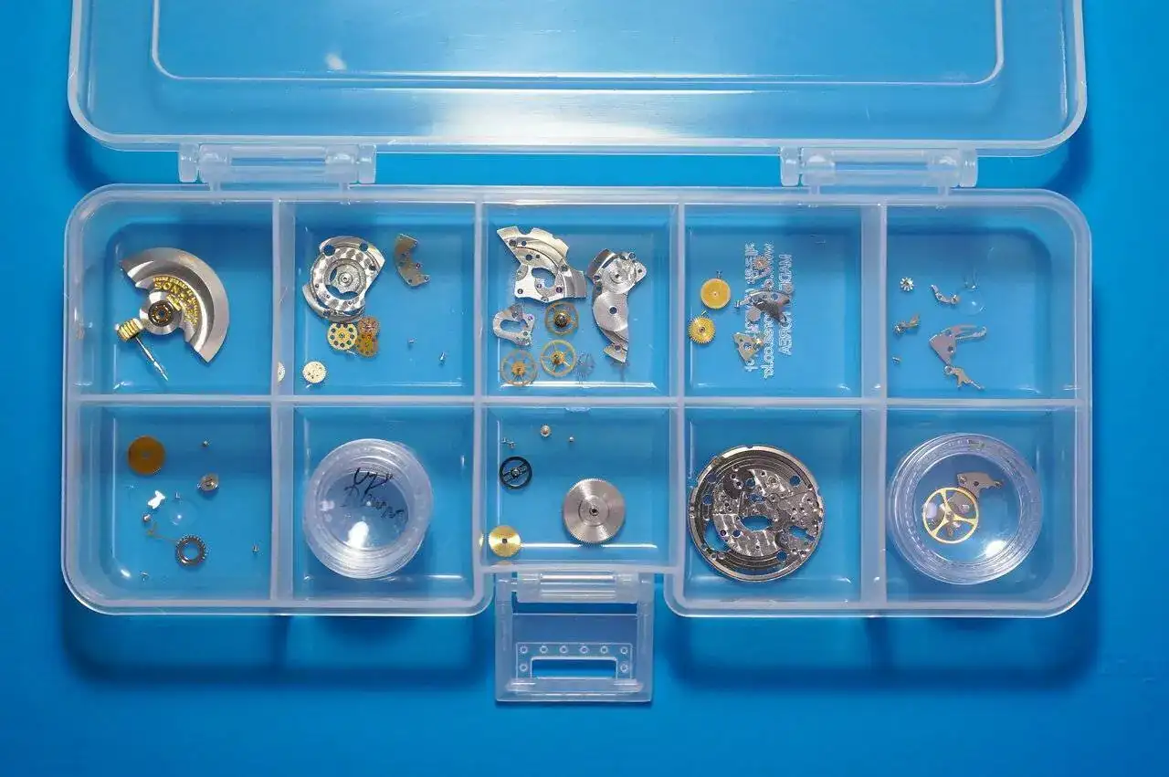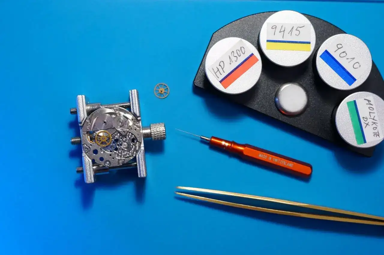 Technos es una marca con una historia compleja y fascinante. Invito a leer en wikipedia al que no la conozca. Dicho esto, este Borazon llamó poderosamente mi atención: carburo de tungsteno, zafiro tallado en cinco caras, dial que aparenta ser de oojo de tigre... no hizo falta pulir ni cambiar nada, solo el servicio de este ETA 2824, cuyo proceso me apetece compartir a pesar de que es de sobra conocido. No soy profesional, llevo solo 6 meses con esto, y este fue mi tercer servicio exitoso. Aún me faltan conocimientos en terrenos más avanzados, como reemplazar joyas, reparar espirales o modificar la holgura en los extremos de los pivotes. Y aún no he podido comprar herramienta como el staking set, etc... poco a poco. Pongo algunas fotos del proceso. Me gusta fotografiar cada pieza con sus tornillos tras quitarla, pues aún me falta la experiencia necesaria para hacerlo todo de memoria. Como hacer fotos es gratis, no es problema y de paso estoy creando un buen archivo de calibres.