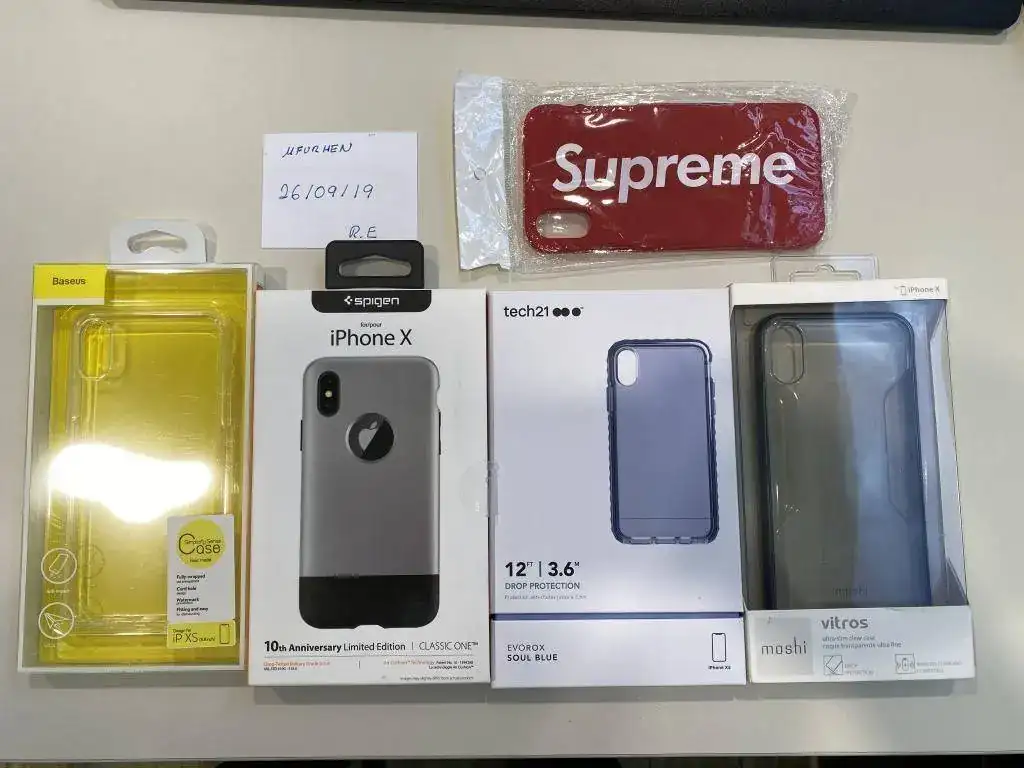 Vendo estas 5 fundas para IPhone XS y X. La roja y la transparente de Baseus están totalmente nuevas sin estrenar. La Spigen es un modelo ultra resistente edición décimo aniversario Iphone y la azul de Tech21 es ultra resistente y con un espectacular diseño que aguantascaídas de 3 metros y fuertes impactos. Han tenido poco uso y les queda mucha vida aún.