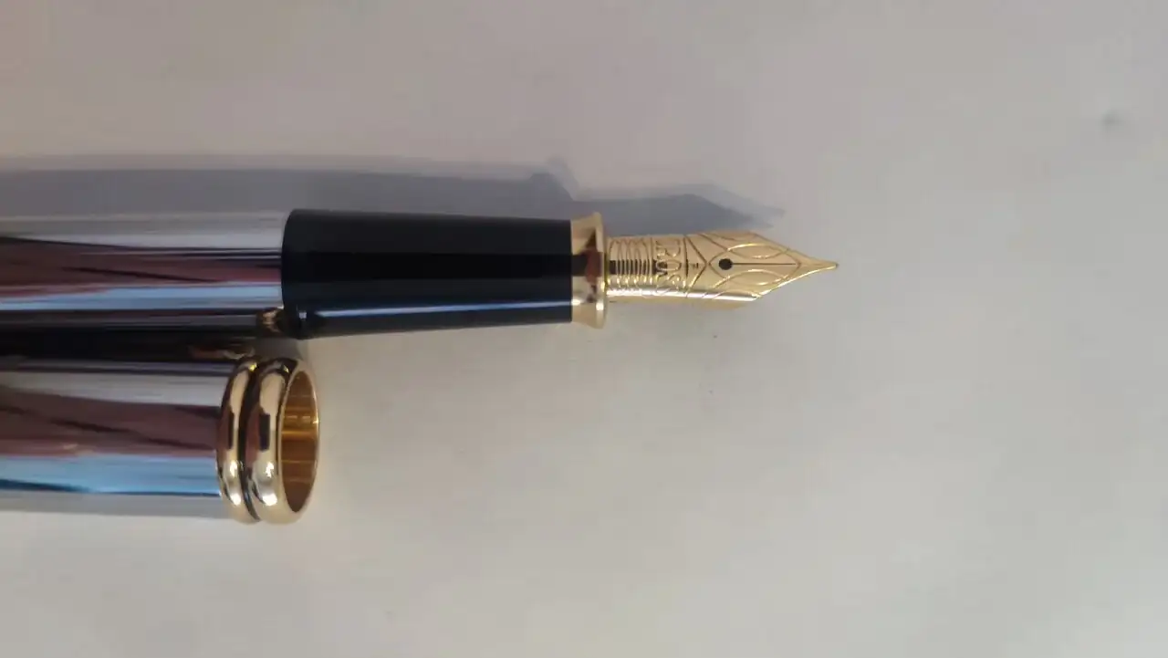 El plumín está bañado en oro de 23 kt. y es tamaño F