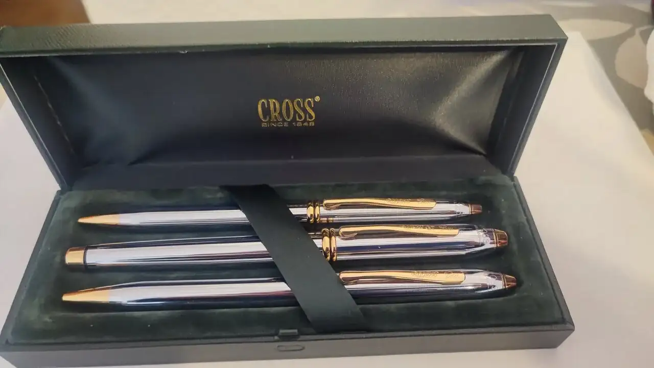 Se compone de tres piezas: roll, boligrafo y pluma. Esta nuevo sin usar en su estuche