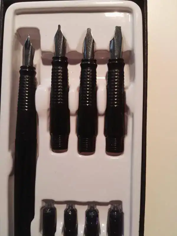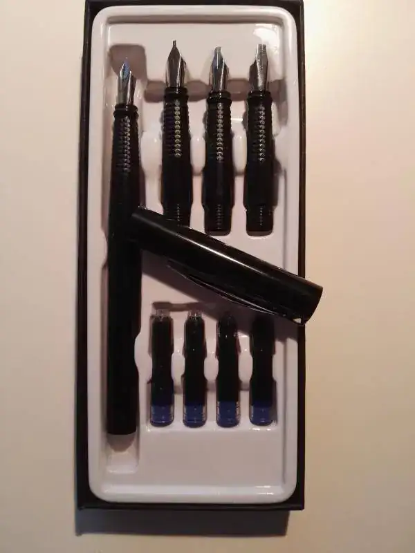 Y cual fue mi sorpresa que me encontré con un set de caligrafía, que bueno no es para tirar cohetes pero que cumple la función. Y lo mejor de todo el precio: 5€.