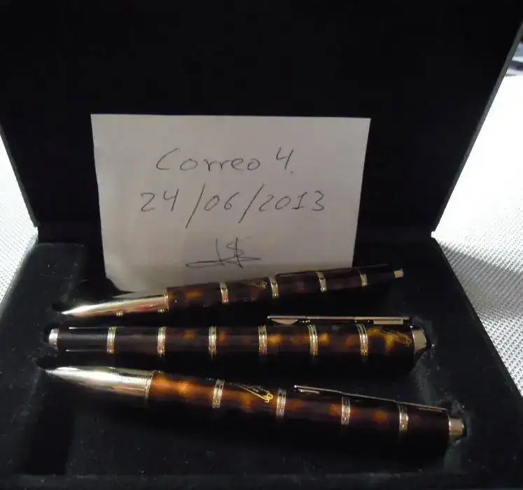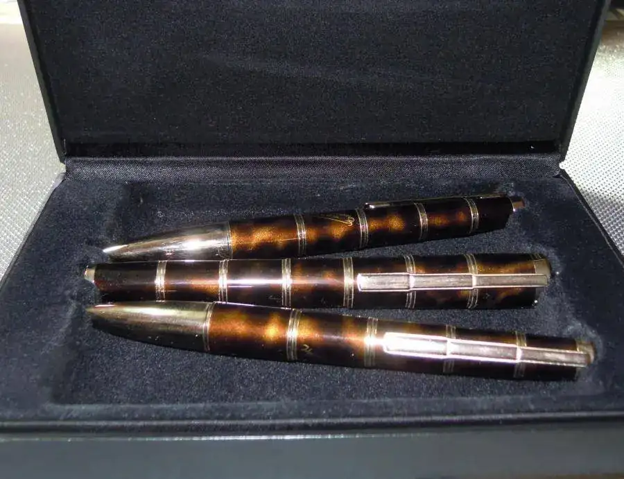 Esta compuesto por Pluma Estilográfica, Bolígrafo y Portaminas, todas las pieza con el mismo número de serie limitada. Nº 0068