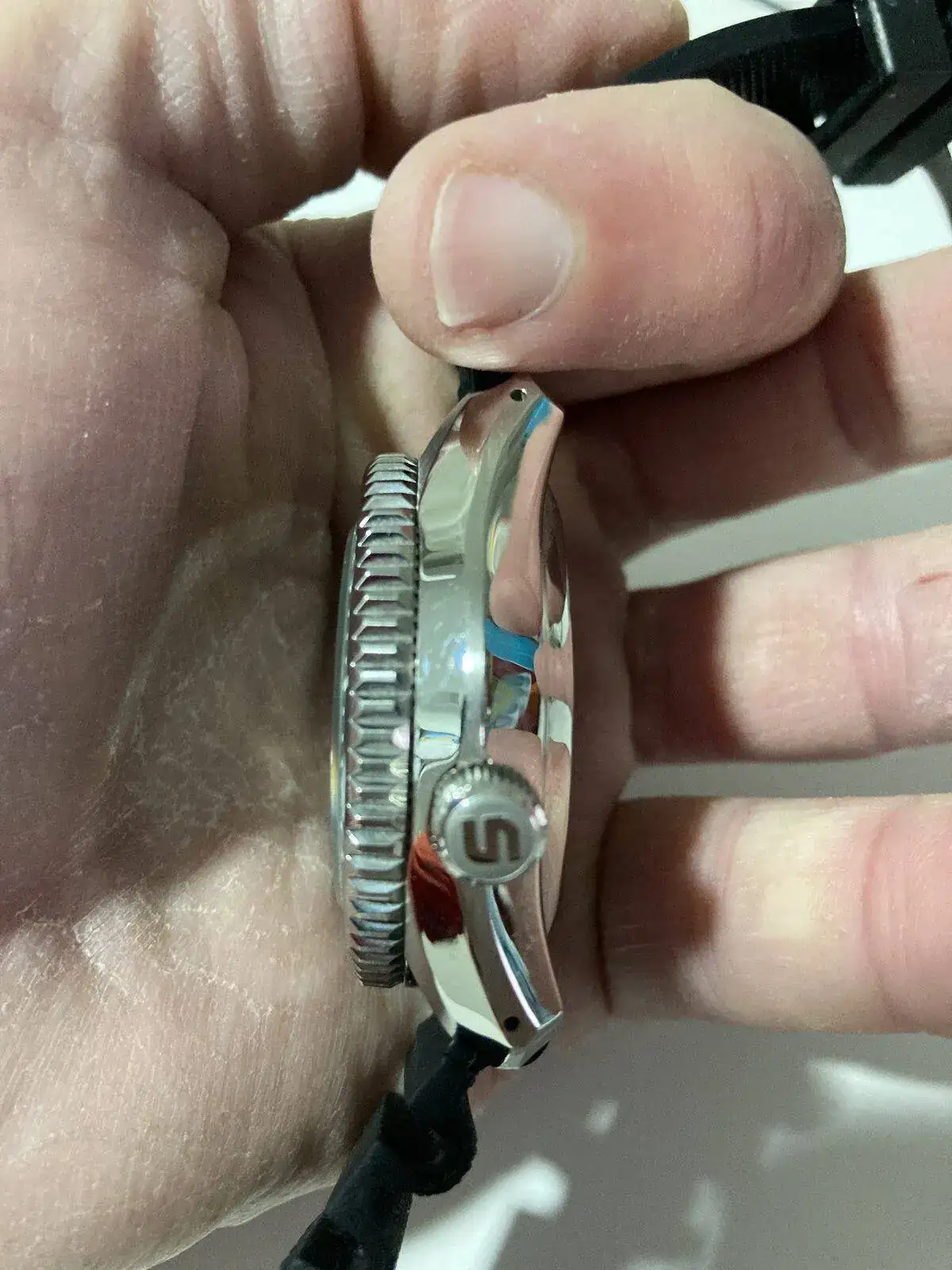 El reloj va perfectamente(-2/3” día),está usado sin golpes ni desperfectos,lo más apreciable es el bisel con efecto muelle(se aplasta si lo aprietas)aunque perfectamente alineado.