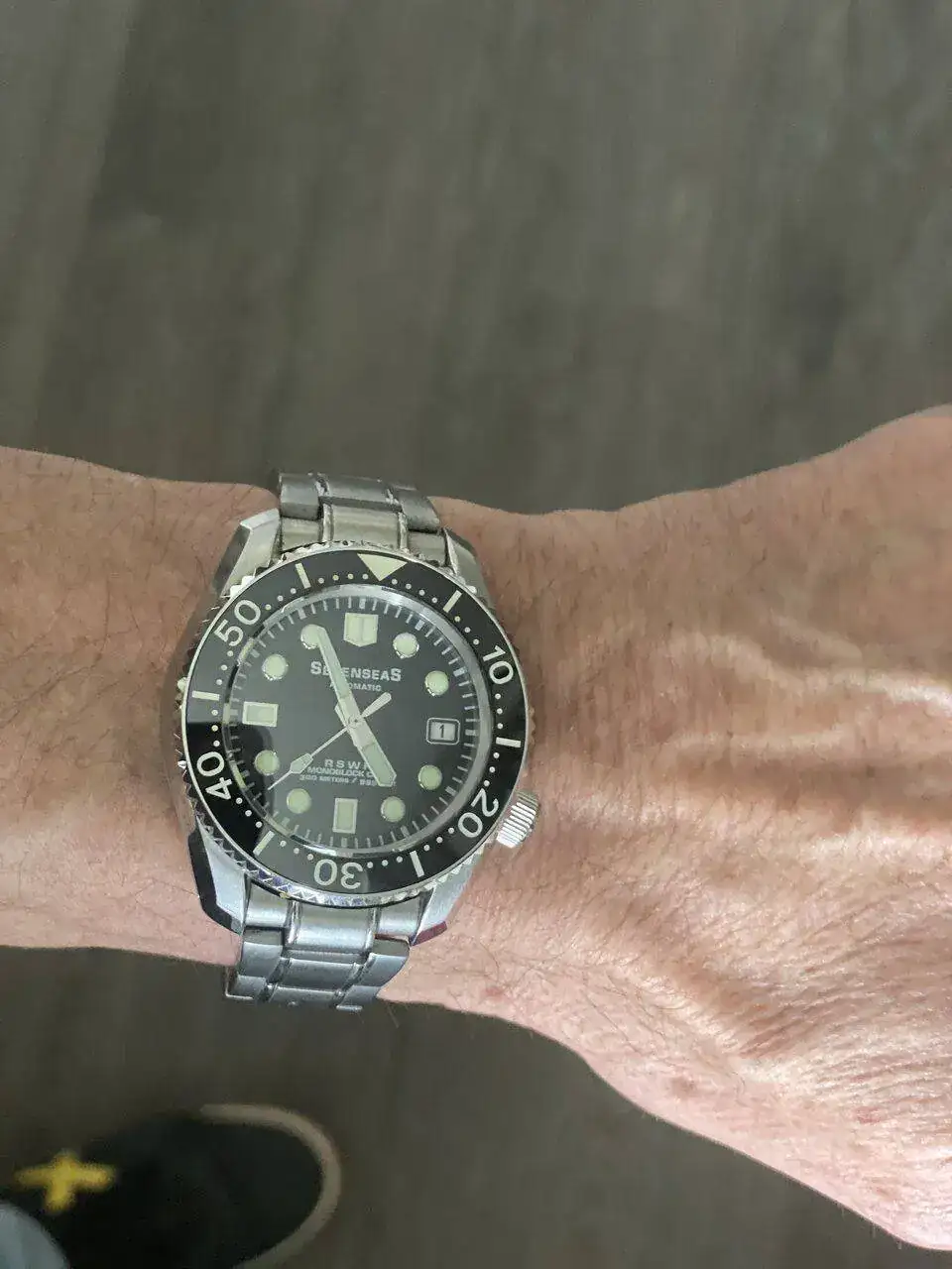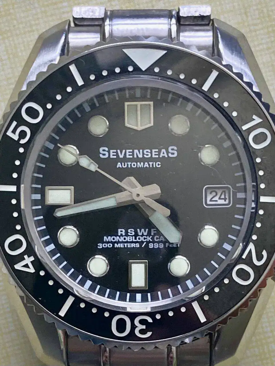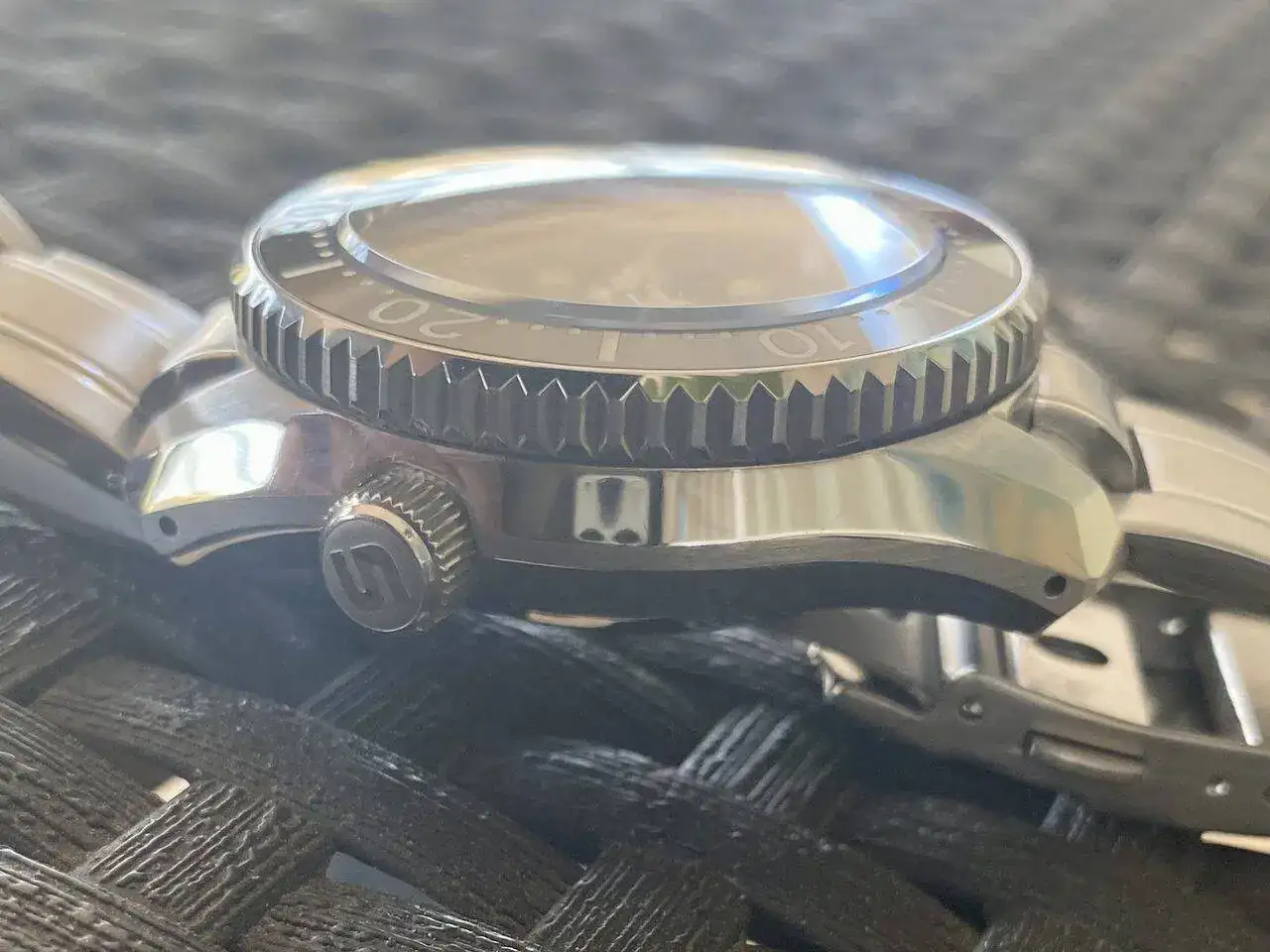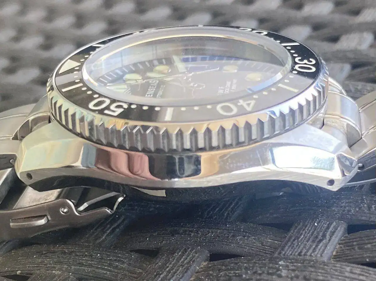 Estado magnífico, lo reestrenas. Caucho sin uso, cierre como nuevo; ardillón y corona firmados. Es un faro de noche y está ajustadísimo con +1seg día a carga completa. Caja monobloque como la del Marinemaster 300 sin pelos. Bisel unidireccional con luminova sin taras.