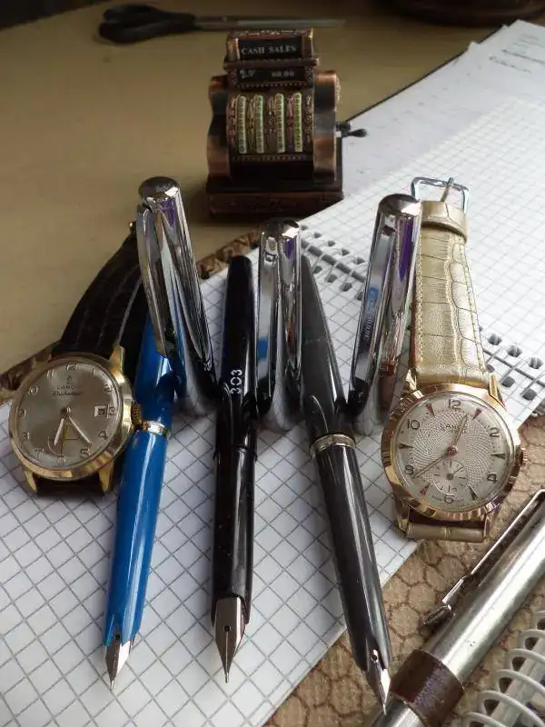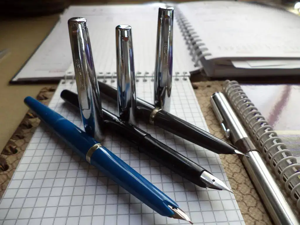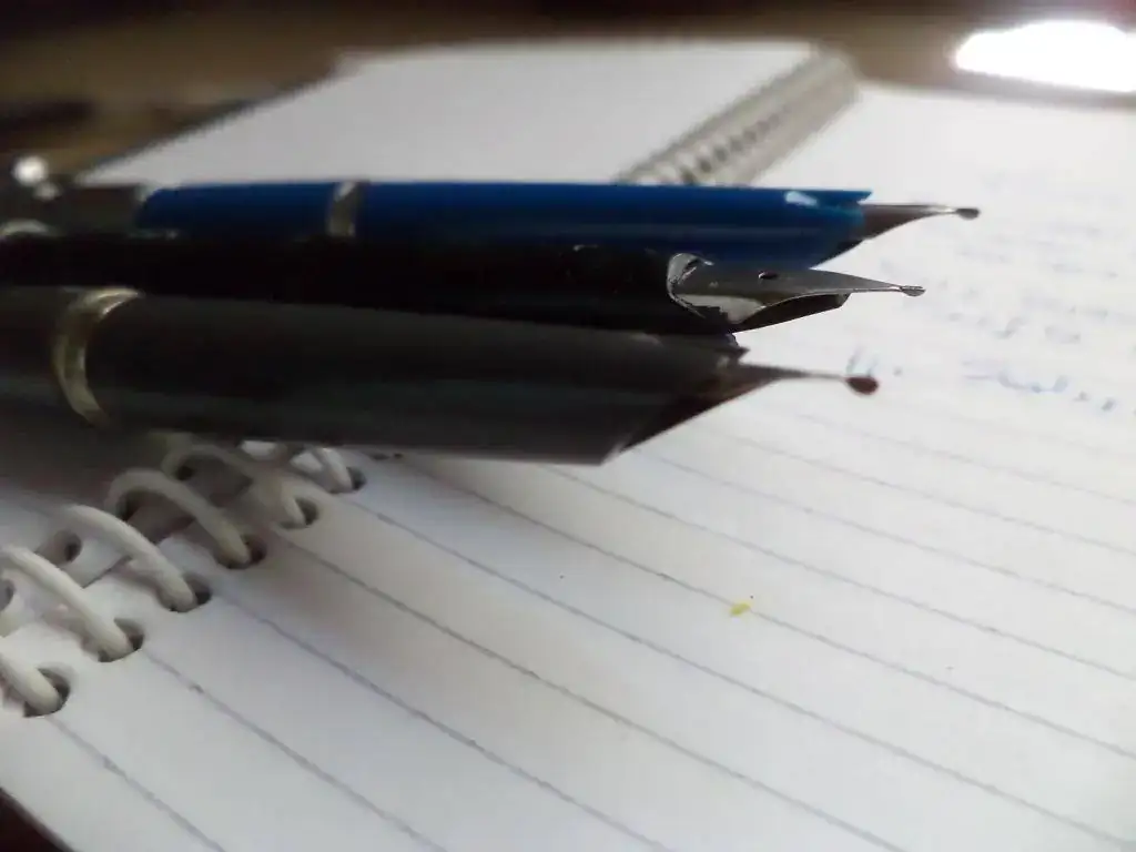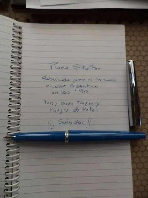 Hace un tiempo, de paseo por la calle principal del pueblo donde vivo, observé que en la vereda de una librería había un cajón con cosas viejas en liquidación. Me sorprendí de encontrar tres plumas con 20 años o más de veteranía NOS, en busca de que un alma caritativa las llevase a casa. Las compré, les hice el baño ritual y acá están: dos Sheaffer y una 303 muy argentina...