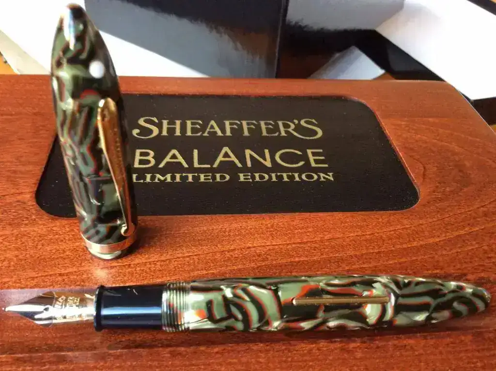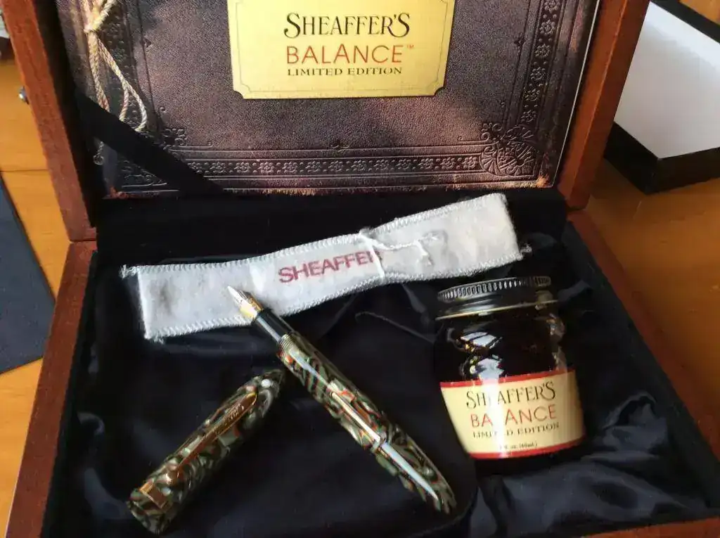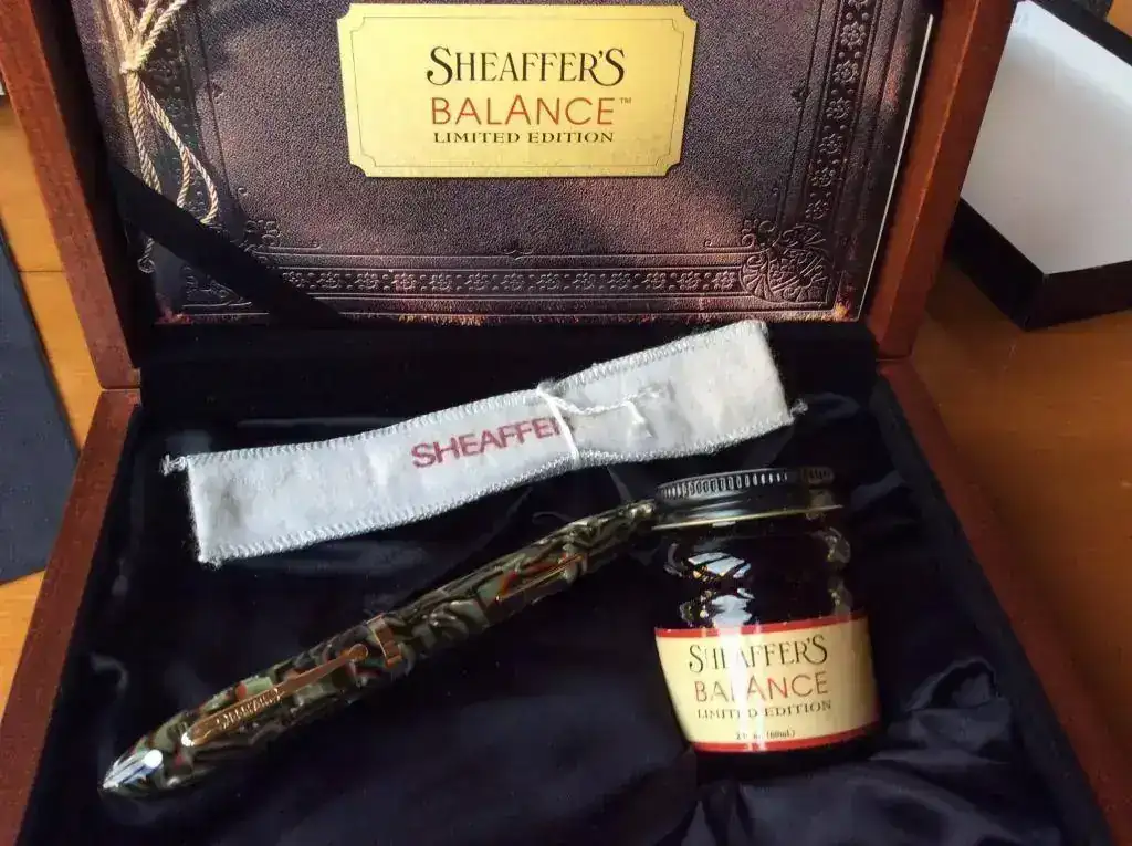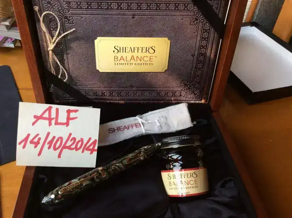 Edición limitada hecha en celuloide. Plumín 18k F. Estado excepcional. Incluye un tintero, documentación y un espectacular cofre de madera.
