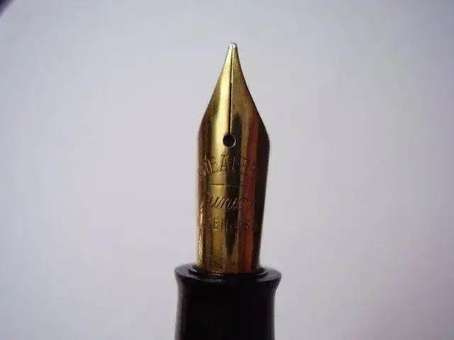 Plumin: oro 14k Punto F, marcado Sheaffer Junior Made in USA.