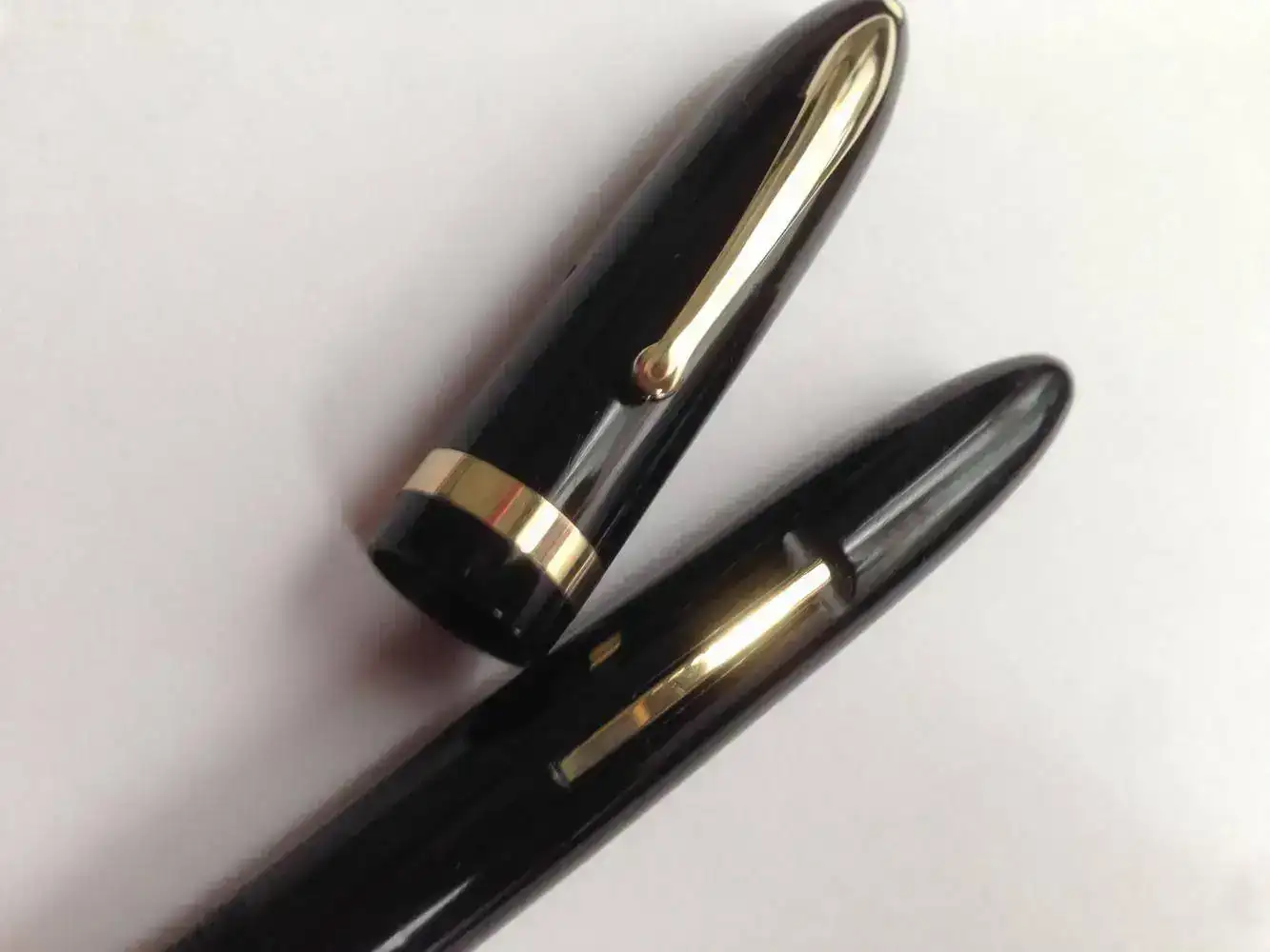 Lleva el clásico punto blanco, de garantía de por vida Sheaffer sobre el clip en el capuchón y la leyenda de fabricante en el cuerpo de la pluma, están sin desgaste y perfectamente legibles.