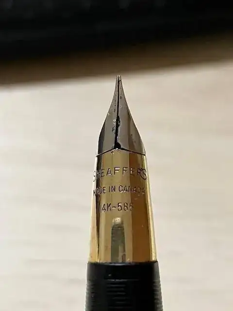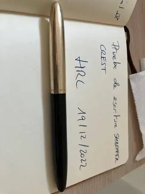 He sacado foto del plumin y he hecho prueba de escritura porque desconozco el grosor del mismo, diria que es algo mas gordo que las otras shaeffer que he puesto en venta del lote familiar, con algo mas de suavidad en el trazo.