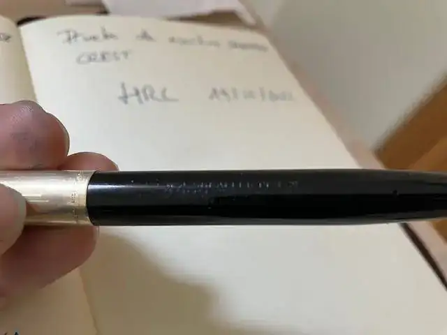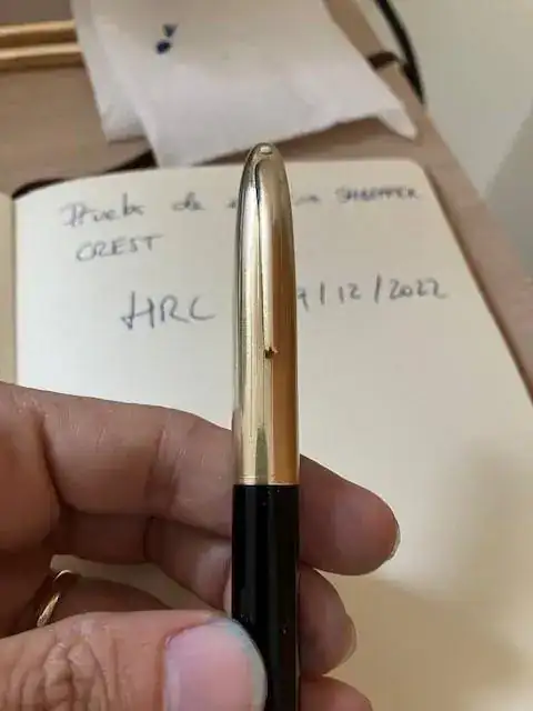Aqui va otra del lote familiar, una shaeffer crest, con el tapon chapado en oro y cuerpo en negro.