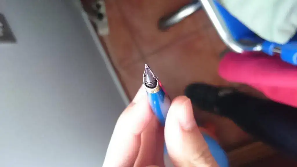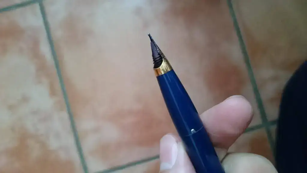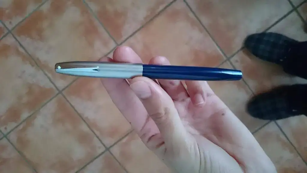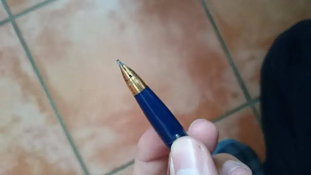 Es touchdown, desenrosca el barril para ver en qué estado está el saco y si está bien puedes empezar a usarla sin problema. Para cargar la tinta desenrrosca la parte del final de la pluma, tira hacia arriba y sumerge el plumin en el tintero y luego con el plumín sumergido tira hacia abajo y espera unos segundos. Luego enrosca el culote de nuevo, limpia el plumín y a escribir. En cuanto al plumín me parece raro que teniendo la pluma los detalles cromados, el plumín sea dorado, pero quién sabe. No sé si es de oro o bañado en oro (me inclino por lo segundo, pues parece que ha perdido un poco de baño de oro en la punta, o quizás es tinta seca). Lo mejor que puedes hacer es comprobar si el saco está bien y si funciona el sistema touchdown usando agua, y luego limpiarla bien (deja la parte del plumin sumergida en agua templada con lavavajillas y unas gotas de amoniaco unas horas y carga y descarga de vez en cuando). Luego aclárala bien, sécala y pruebala con tinta y nos dices qué tal o qué problemas ves.