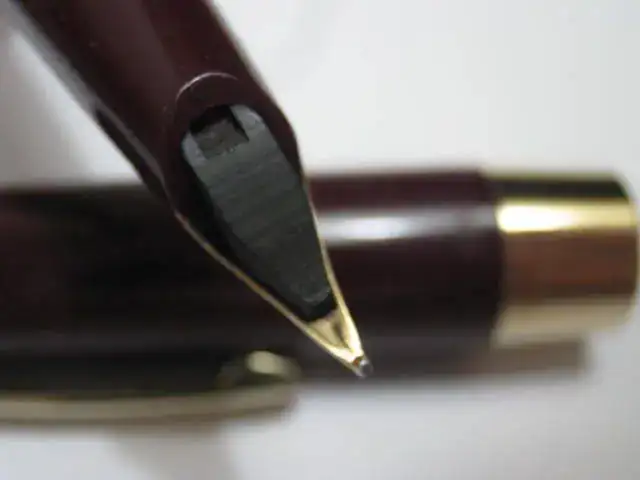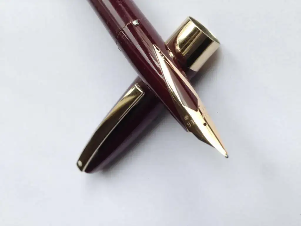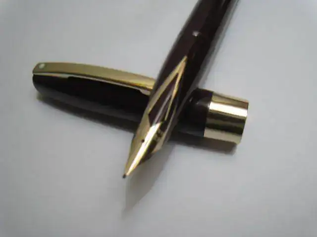 Plumin: oro 14k Punto F, marcado Sheaffer 14k 585 USA.