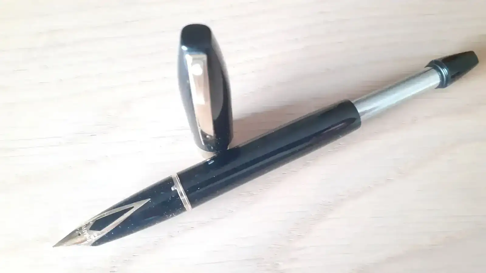 El desempeño de la pluma es una maravilla. Su característico plumín incrustado de 18k, con ese leve efecto respingón de su punta, fino en este caso, se desliza suavemente en todo tipo de papel, y su flujo es justo el que me gusta. Puede estar una semana sin uso, y responde a la primera, al menos con las tintas que he usado. Es una pluma con peso, un tanto gruesa, pero relativamente corta, por lo que a mi mano pequeña no se le hace incómoda.