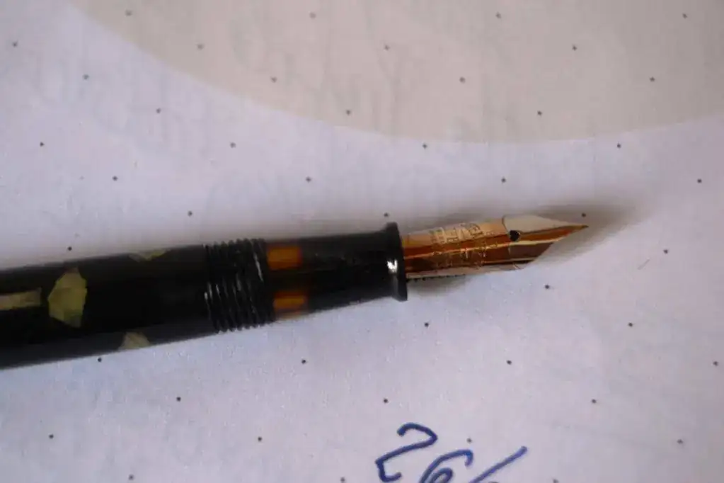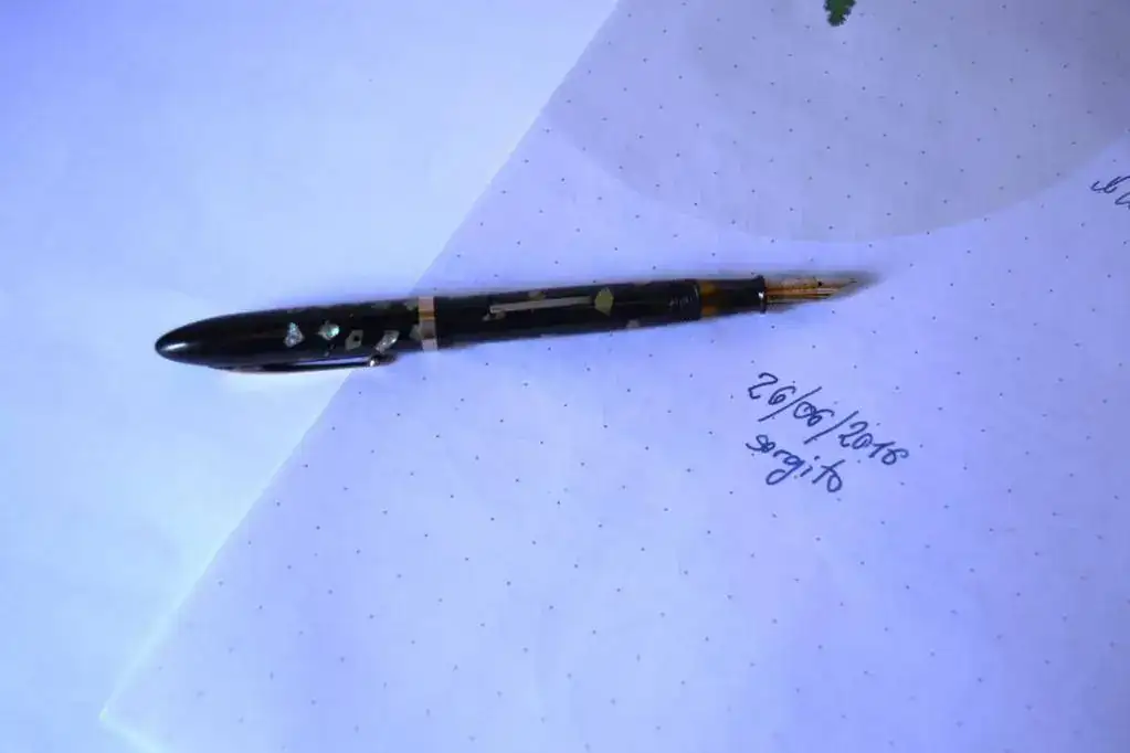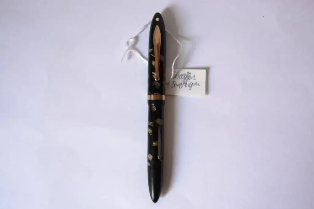 Esta pluma tiene una peculiaridad según me dijo alguien que considero bastante enterado de las Sheaffer de esta época, sería una mezcla oficial entre un capuchón y plumín del modelo Sovereign pero un cuerpo del modelo Junior y con los acabados dorados, que probablemente salió de la fabrica de Canadá...