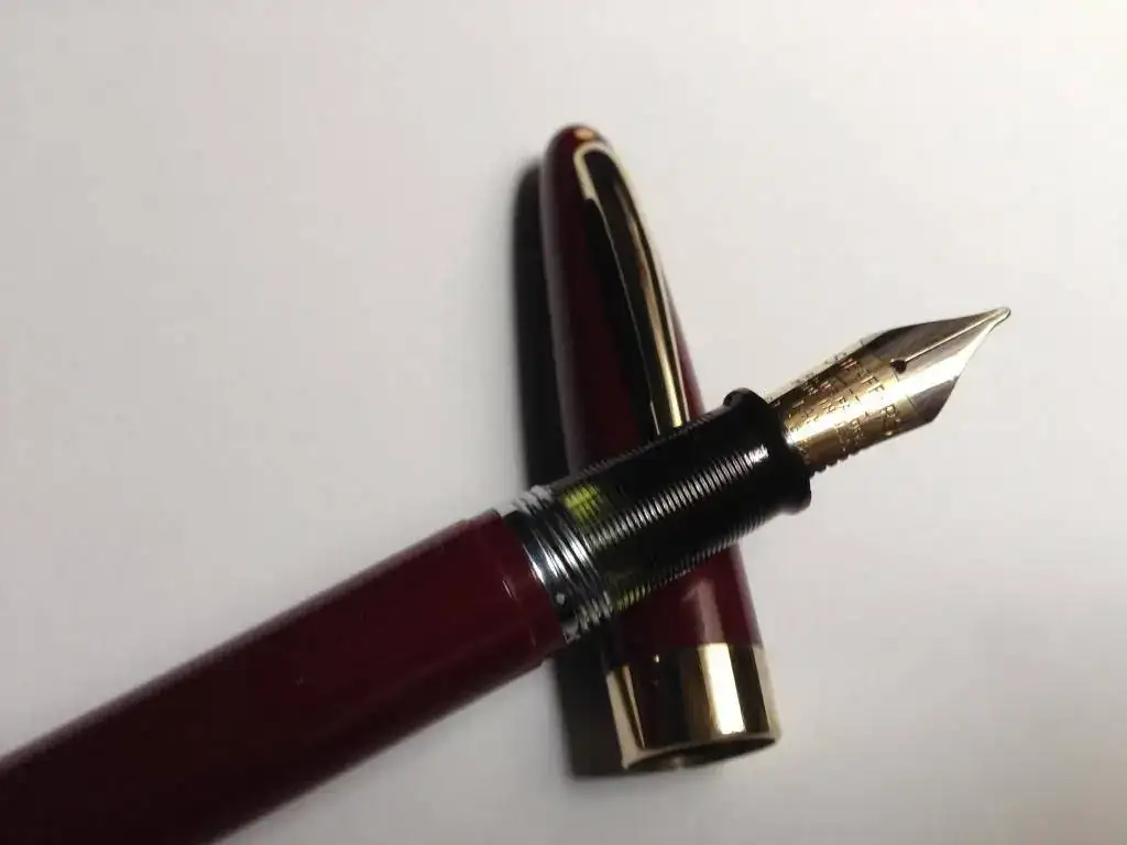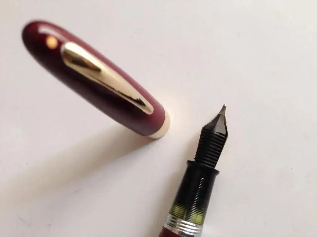 Lleva el clásico punto blanco, de garantía de por vida Sheaffer sobre el clip en el capuchón y la leyenda de fabricante en el cuerpo de la pluma, están sin desgaste y perfectamente legibles. Completamente revisada, pulida y con saco nuevo funcionando perfectamente.
