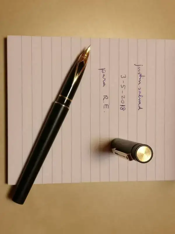 Ha sido la pluma que ha usado relativamente bastante mi MDD hasta hace poco (unas 8 cargas, escribe a mano poco) hasta que ha sido desbancada por una Kaweco Sport. Y como sólo usa una (no como yo que llevo siempre unas diez entintadas) me la ha devuelto.