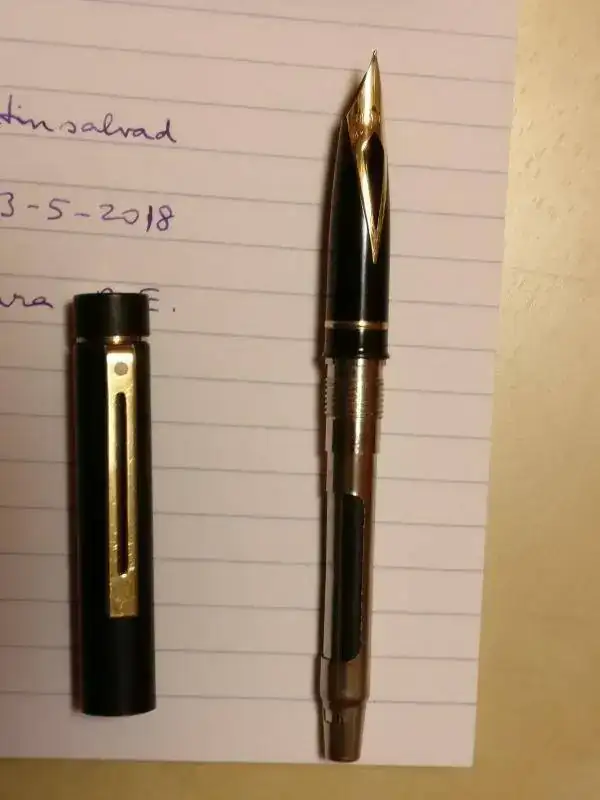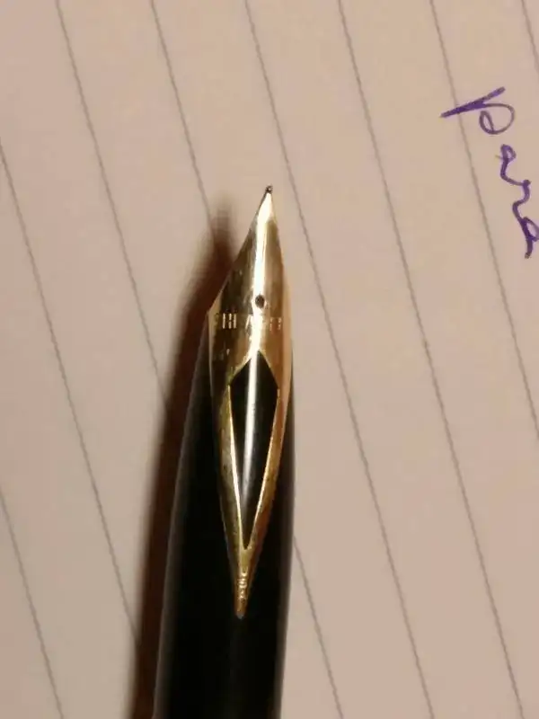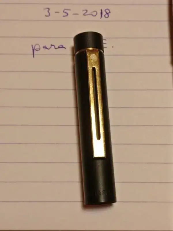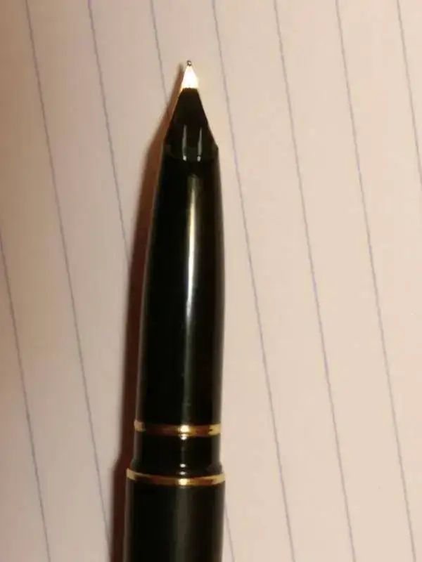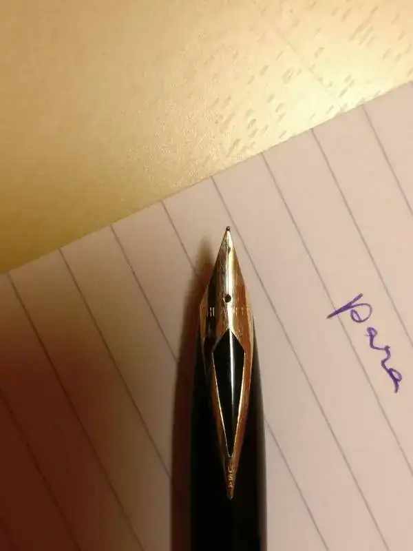 El plumín encastrado típico de Sheaffer es un tamaño F, suave, suave, pero estrictamente fino. Para mí demasiado fino. He sudado tinta para terminar la carga de Poussière de Luna de Herbin (siempre ha llevado esa tinta) y no la voy a usar más. Prefiero que la disfrute alguien que aprecie más que yo este punto fino.