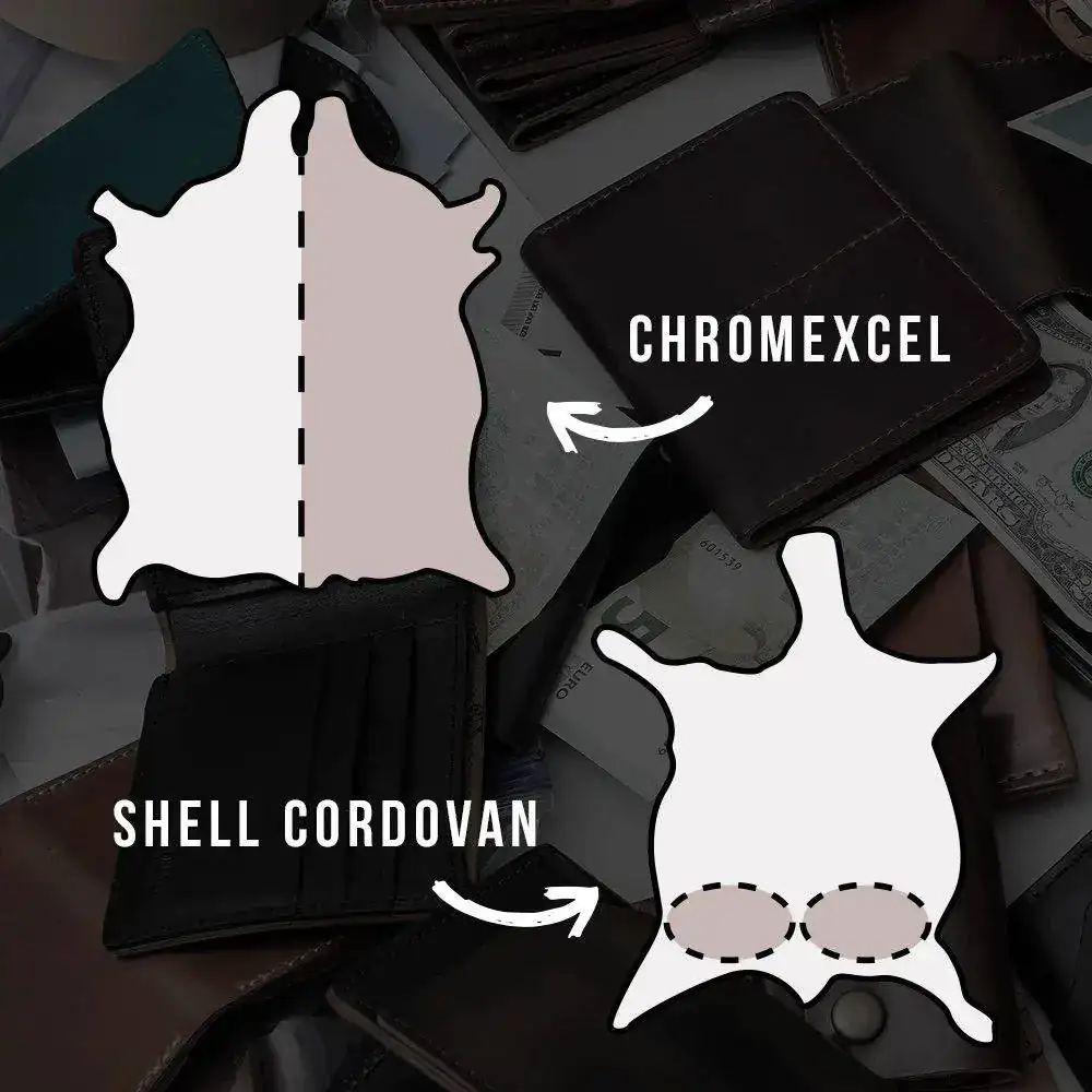 Esta piel la trata una curtiduría de Chicago: la Horween Leather Company, y elige exactamente las dos partes en forma de riñón que se sitúan en los cuartos traseros del caballo, sobre la cola. Las piezas de piel ya cortadas, denominadas «shells», son pequeñas; algunas solo alcanzan el tamaño de uno o dos palmos, otras son algo más grandes. Estas partes se ubican en el «punto ciego» del caballo: una zona fuera del alcance de la cola o de los dientes, que el animal usa para espantar las moscas. La piel en esta zona es más gruesa para protegerse mejor de estos insectos.