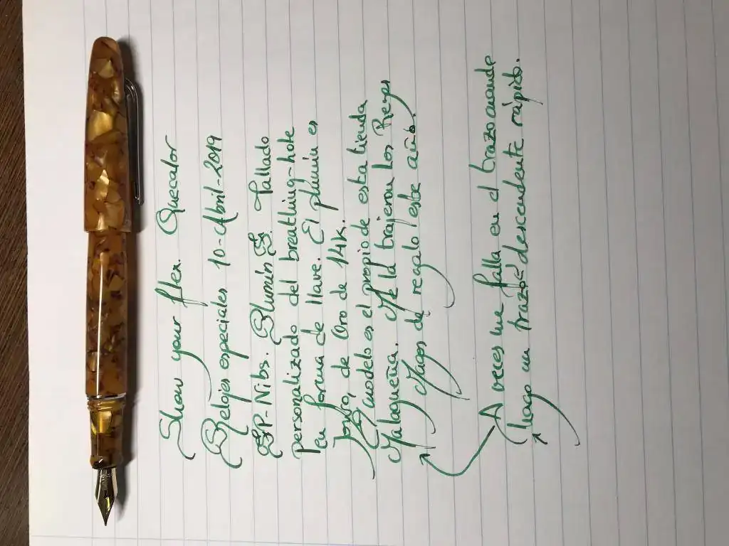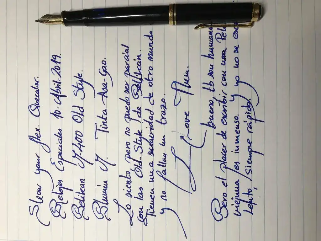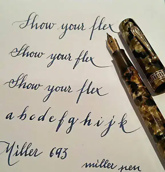Lo que propongo, a quien le apetezca, es mostrar aquí alguna, pocas o muchas las plumas que tengamos en nuestras colecciones y que posean un plumín flexible. Mencionar marca y modelo, poner una foto (normal, a la medida de nuestras posibilidades) de la pluma o del plumín, y una muestra de letra realizada con la protagonista en la que se aprecie la capacidad de flexión. Algo sencillo y rápido. De esta forma podremos crear un pequeño catálogo de flexibles que nos pueden orientar a la hora de buscar y reconocer nuevas adquisiciones. Sin duda, algunas de las que se mostrarán serán una sorpresa para muchos.