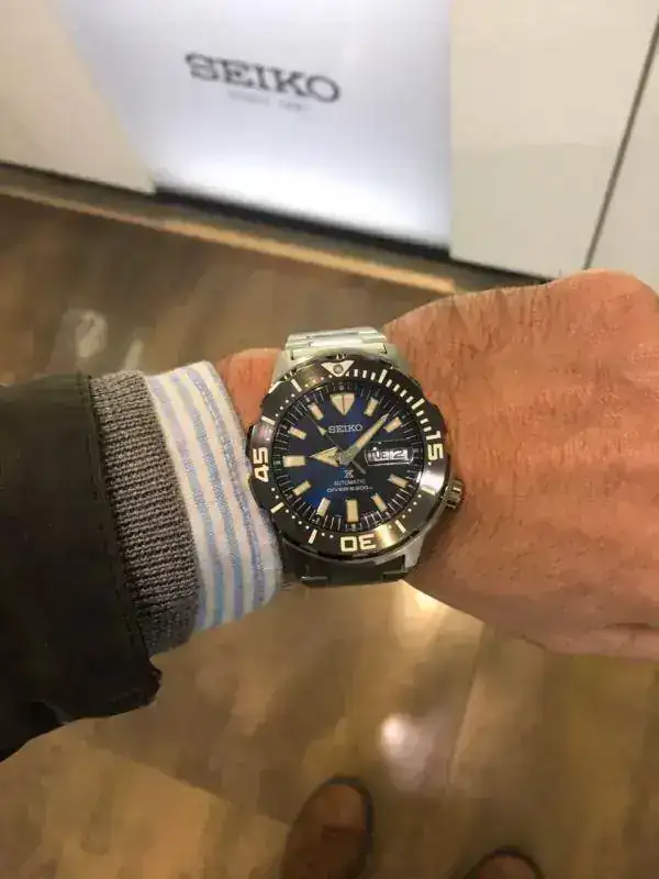El Seiko Monster es un reloj que levanta pasiones en cualquiera de sus versiones, yo creo que la percepción del tamaño en un reloj es algo subjetivo, no nos dejemos engañar por comentarios y modas, el reloj te queda perfecto y el tamaño es el adecuado.