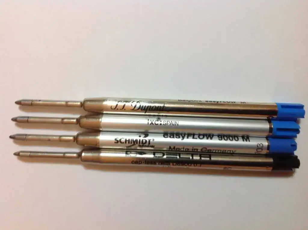 Adjunto cuatro de los recambios universales (o tipo Parker) que he probado ultimamente y que consiguen con su tinta más fluida (easy flow) que tu bolígrafo se deslice como un roller: