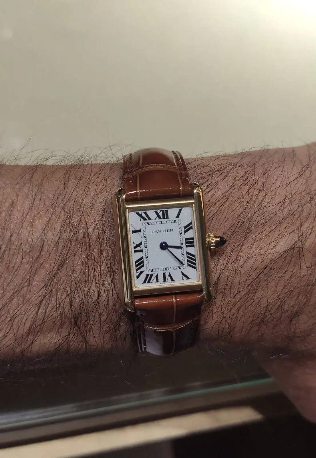 Estupenda mañana en Cartier (en breve abriré un post con la grata experiencia), para decidirme por una compra inminente. Quisiera pediros vuestra opinión sobre idoneidad de tamaños del Tank Louis.