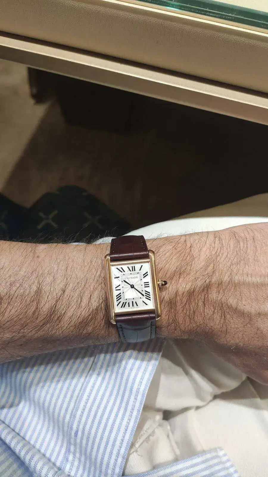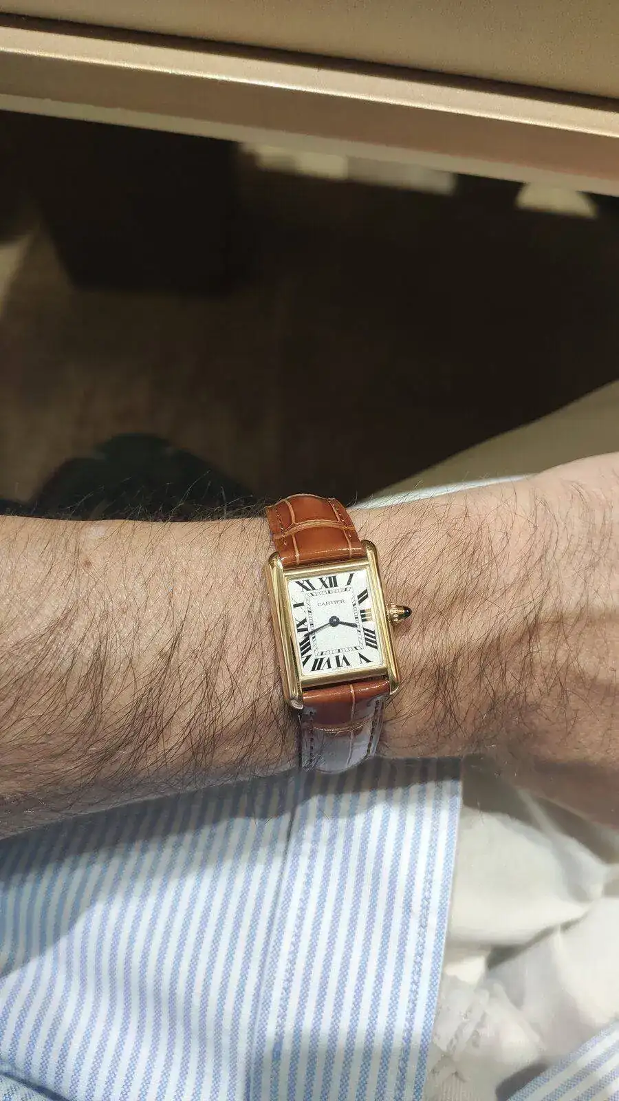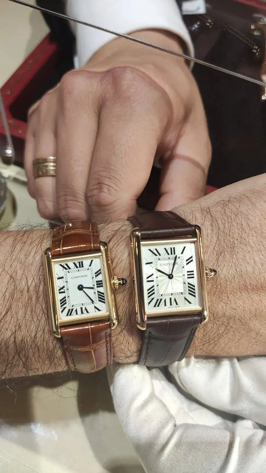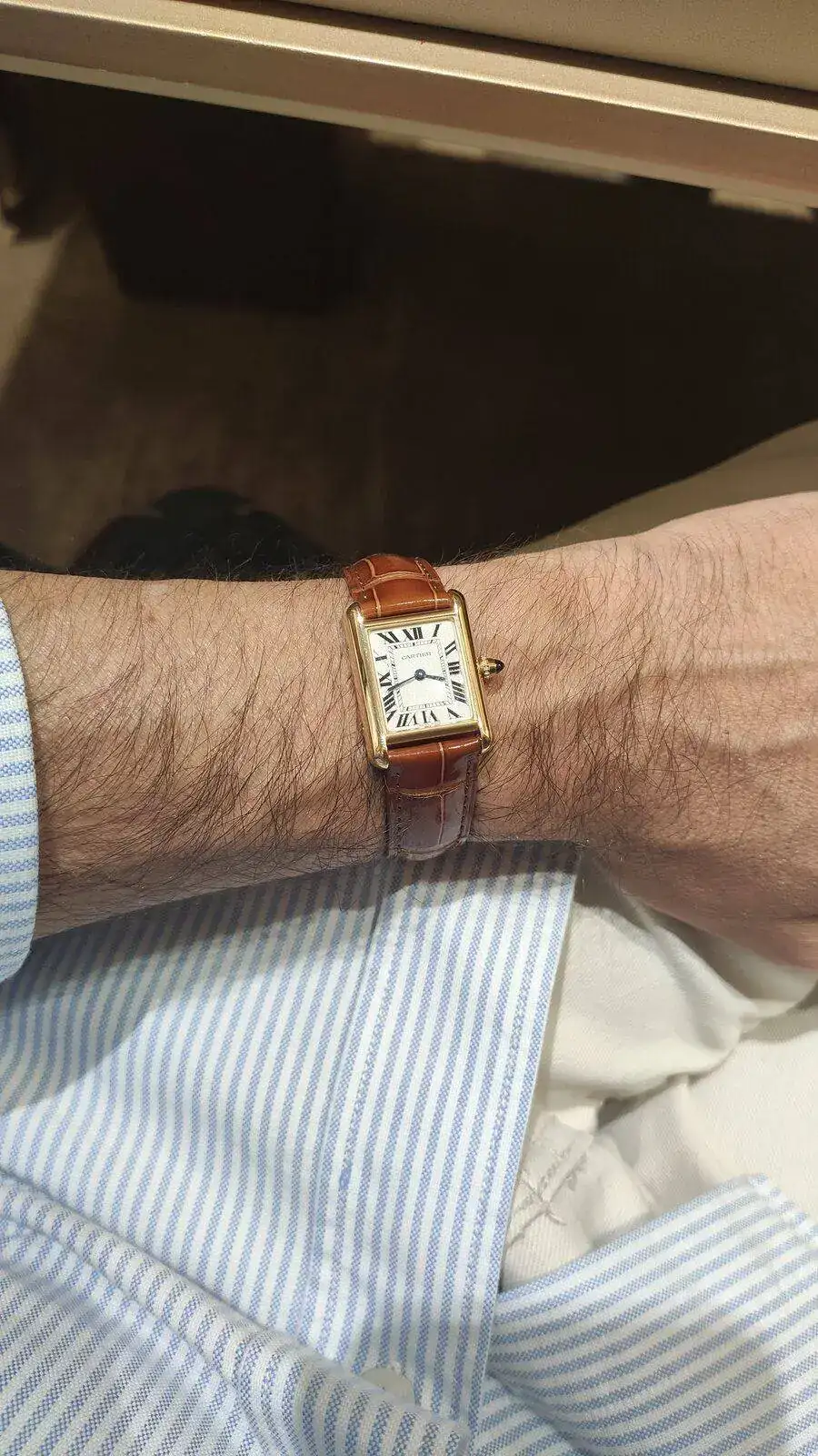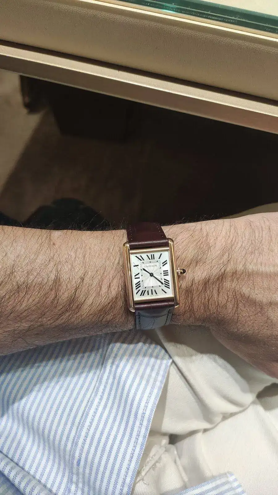 Estupenda mañana en Cartier (en breve abriré un post con la grata experiencia), para decidirme por una compra inminente. Quisiera pediros vuestra opinión sobre idoneidad de tamaños del Tank Louis.