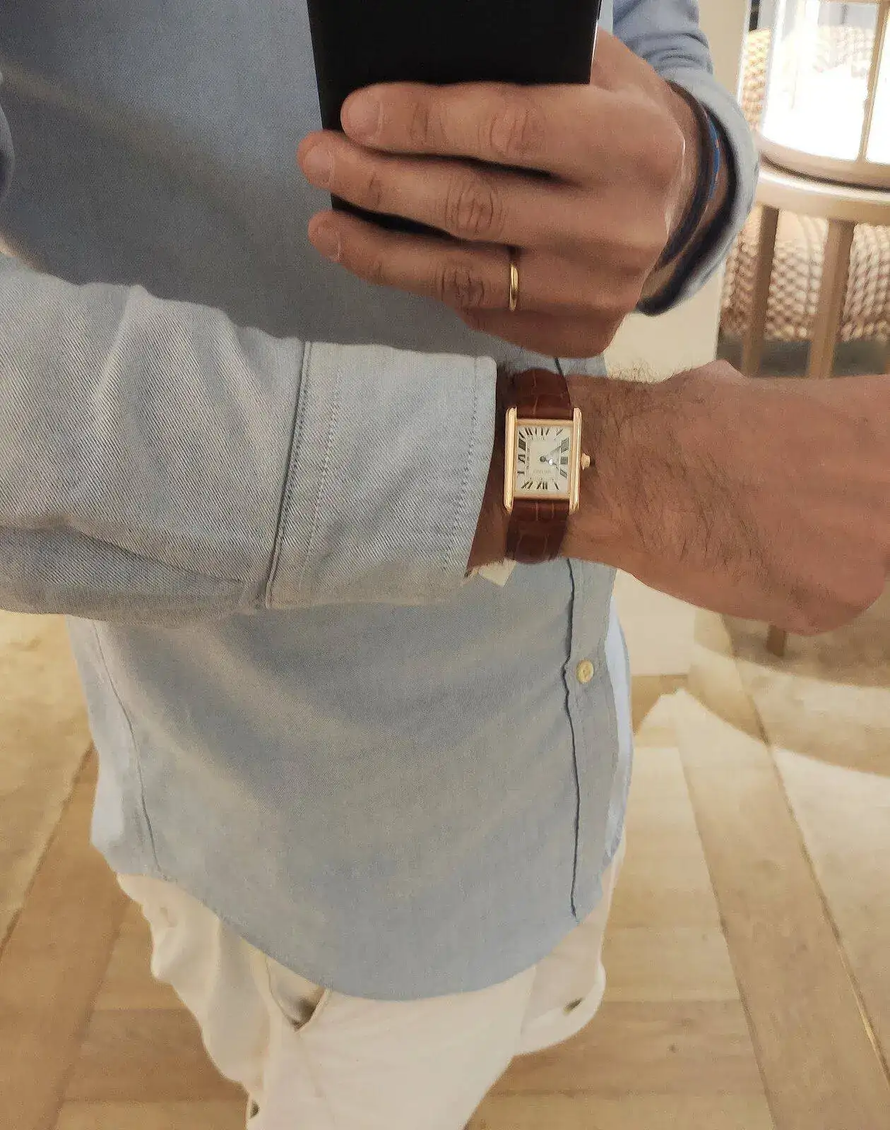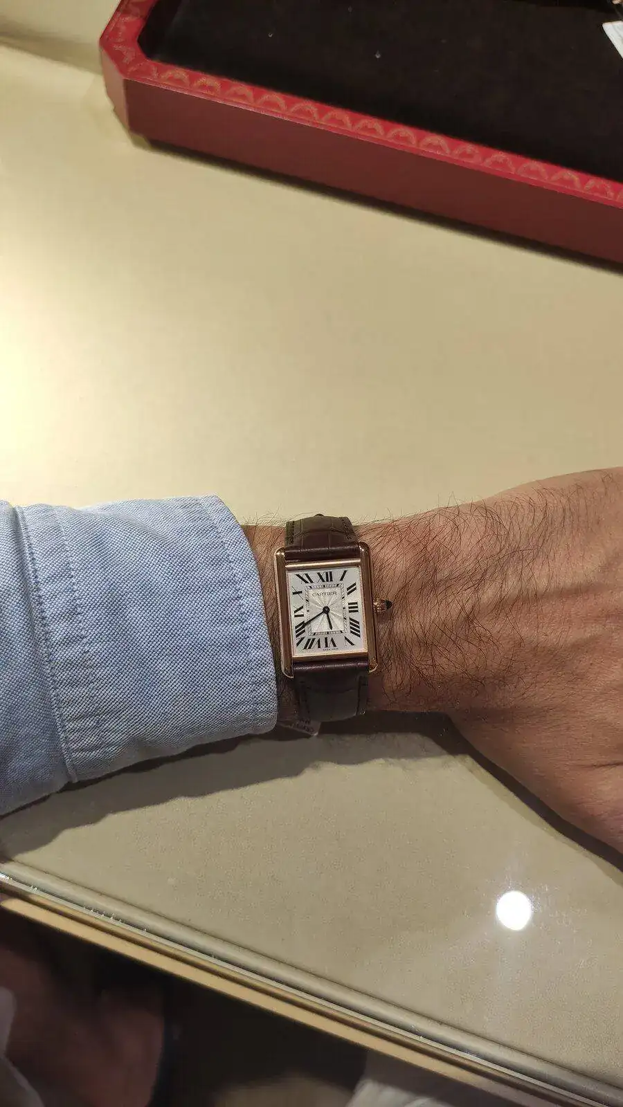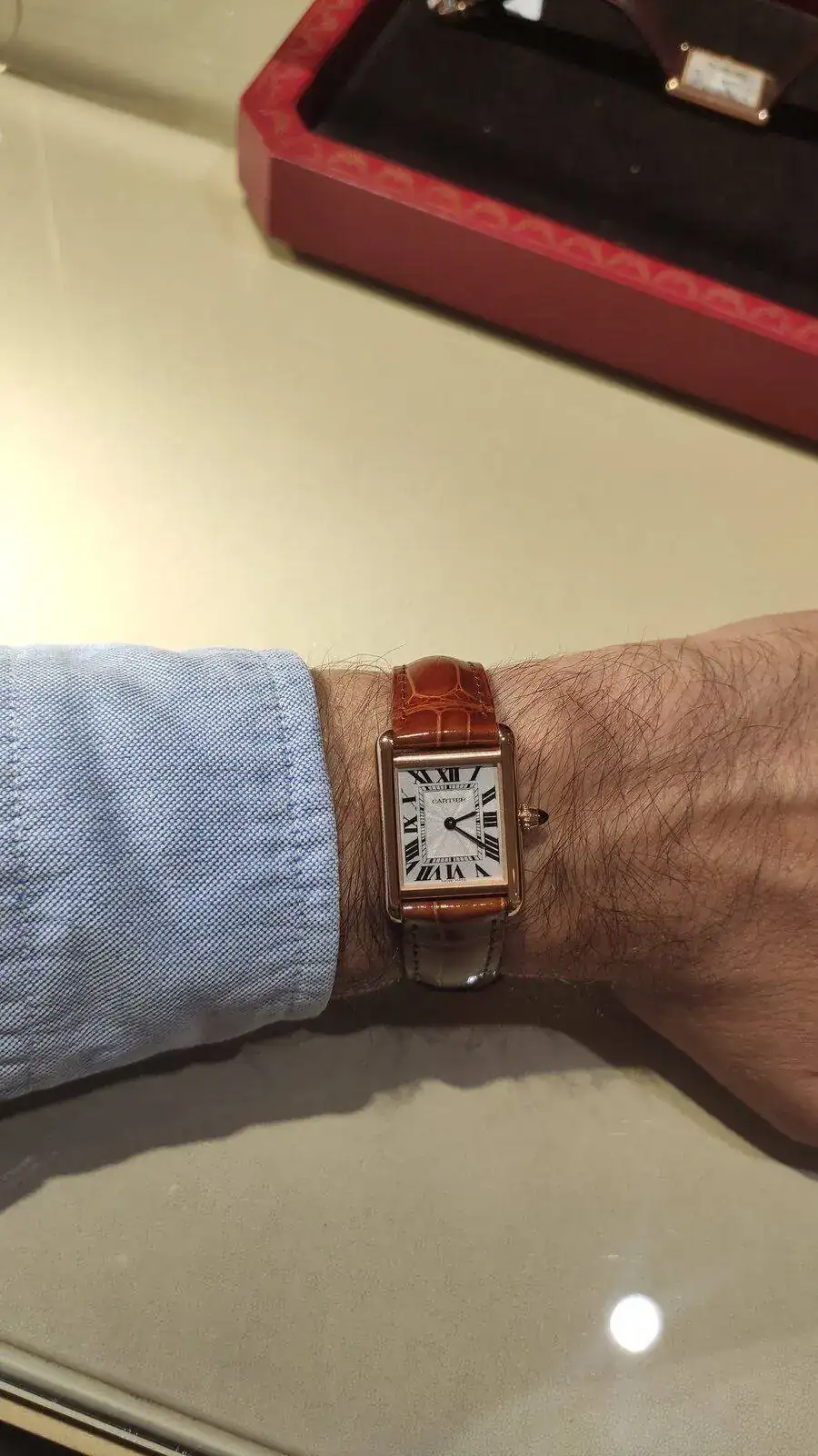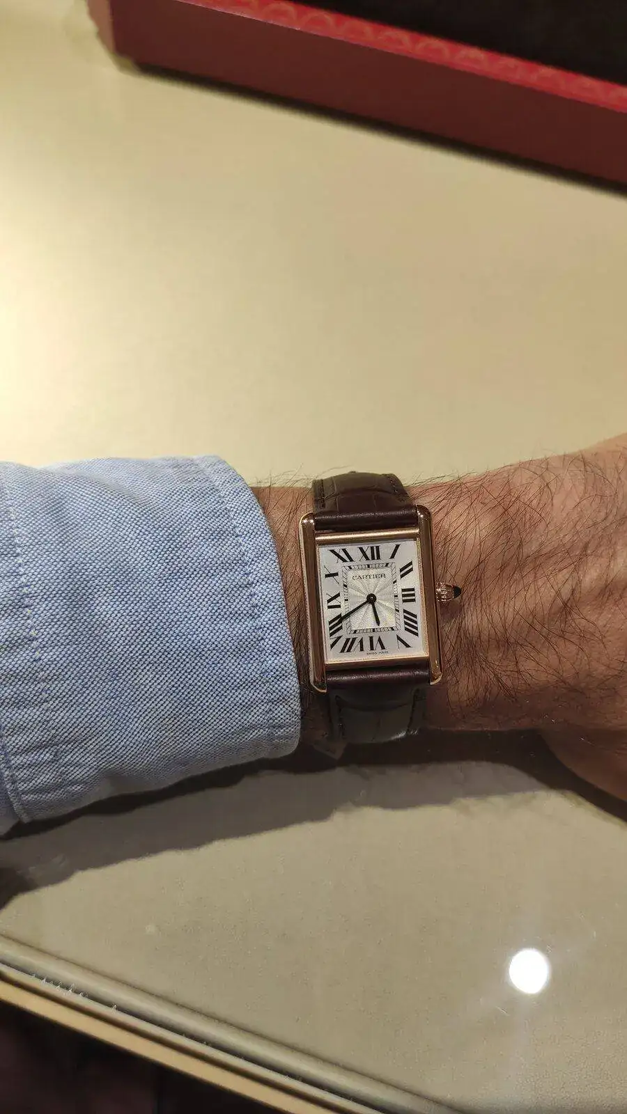 @unicoru , ninguno tiene la medida del Louis Cartier original, y me han indicado que no se sabe si en algún momento sacarán un modelo exacto. Por lo que no puedo ser lo purista que quisiera...