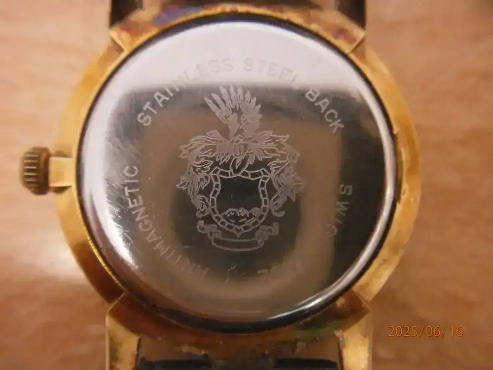 Ola a todos , hace mucho tiempo que no salgo por aquí. Hoy e sacado este reloj de cuerda del relojero que lo adquirí en un mercadillo , y le faltaba el cristal o flexi. No pone marca del fabricante , solo que es suizo y un escudo parecido al DUWARD pero no lo e encontrado, parece ser que se hizo para Arabia saudí, ya que mirando en la lupa lleva su escudo del país en pequeñito, y estos serian los jeques que mandaron. Alguien podría decirme que marca es por el escudo. Un saludo RESCATADOR DE RELOJES