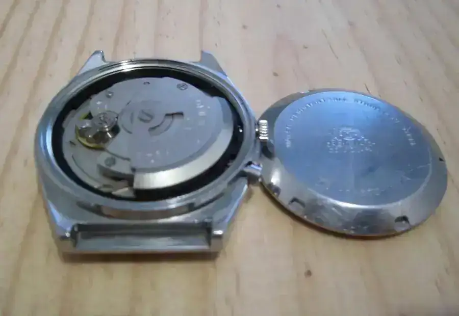 Y aquí se ve el bicho abierto (Observensé las rayas en la tapa producto del método fallido de alicates-destrornillador