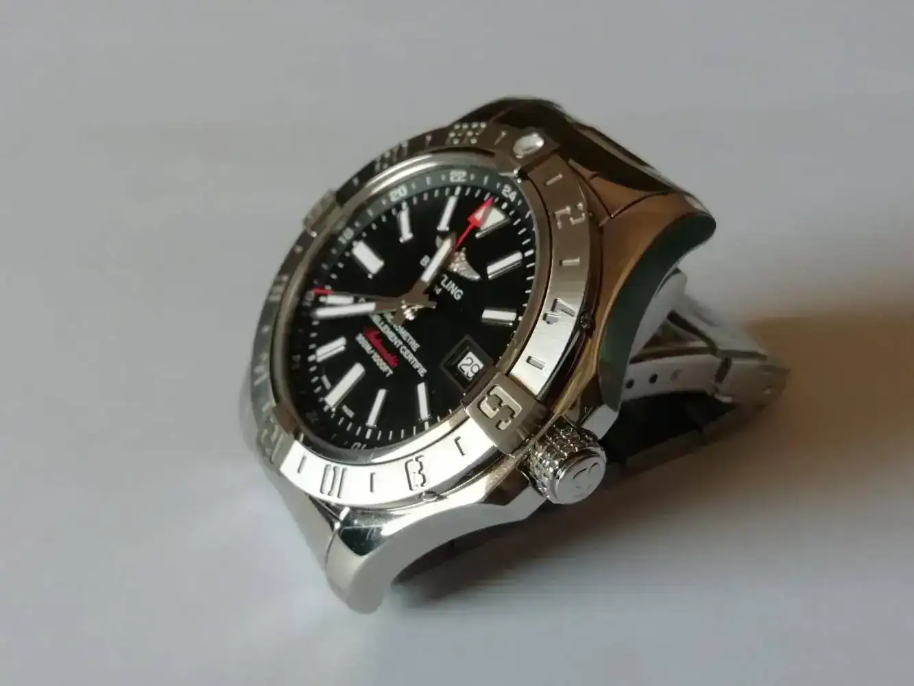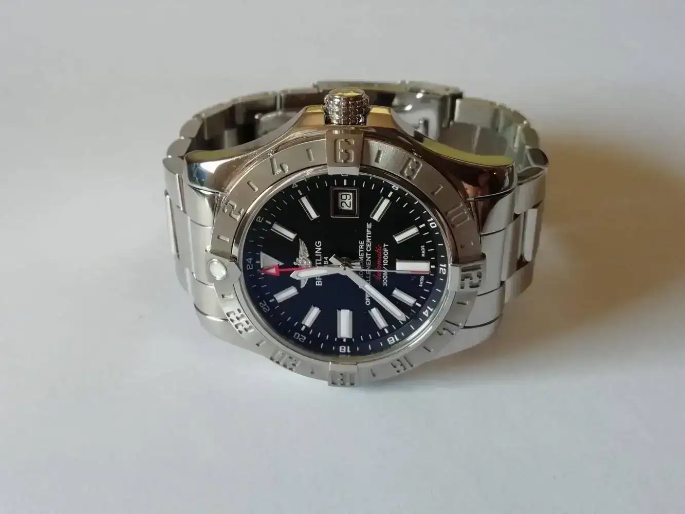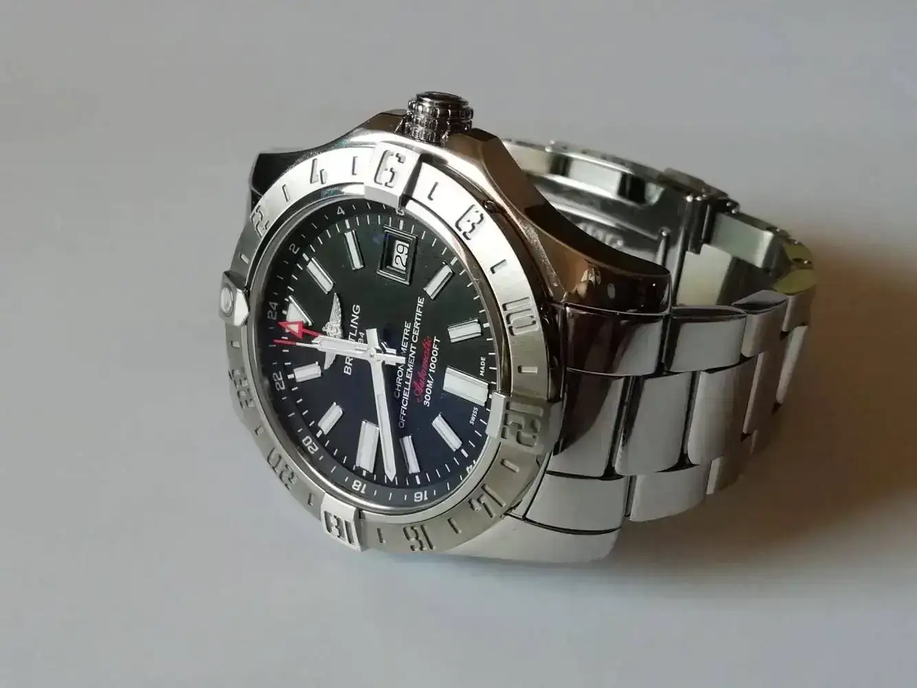 Y el nuevo el Breitling Avenger II GMT ha venido a ocupar su lugar. Mismo calibre misma funcion pero con otro nivel de acabados y otro precio como podeis imaginar.