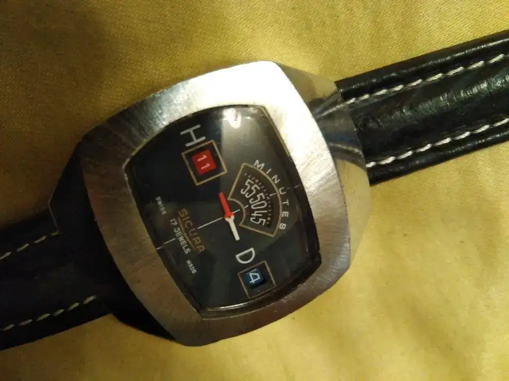 Ofrezco reloj Sicura con el curioso sistema de presentación de "horas saltantes" de remonte mecánico: